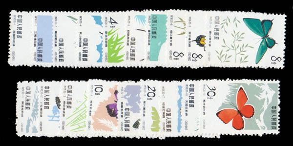 China Peoples Republic, 1963, Butterflies S56 complete Scott 661-680, Post Office fresh, without gum as issued, Very Fine. Scott 500 HK 3,940.
