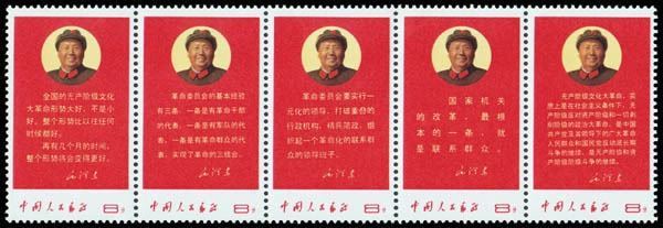 China Peoples Republic, 1968, Directives of Chairman Mao W10 complete Scott 996a, splendid, pristine se-tenant strip of 5, unfolded, o.g., never hinged, Very Fine, a beauty. Scott 7,000+ HK 55,120.
