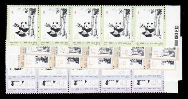 China Peoples Republic, 1973, Giant Pandas N14 complete Scott 1108-1113, five sets complete, in marginal strips of five, o.g., never hinged, Very Fine. Scott 960 HK 7,560.