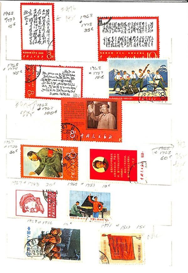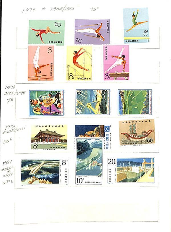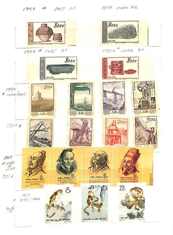 China Peoples Republic, Powerful mint or used stockbook selection, useful holding offering a nice array of sets and singles, including mint Scott #713-715, 1054-1057, 1143-1148, and 1573; plus used including a nice range of Cultural Revolution items, 8f Monkey New Year #1586, used single and vertical pair, etc., mostly Fine to Very Fine, nice group; examine.