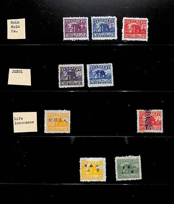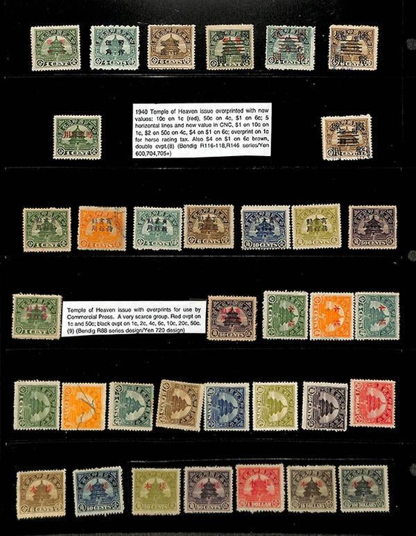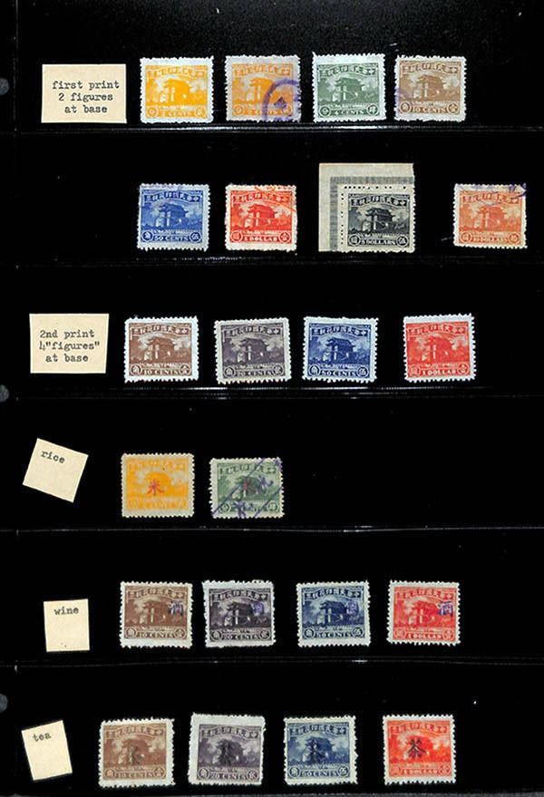China, Revenue, a fascinating mint and used collection, consisting of approximately 180 pieces, plus a partial folded sheet not counted; includes Provisional Nationalist Government issues, some Japanese Occupation issues, extensive Temple of Heaven and Pagoda on Hill types with surcharges; usages for wine, tea, life insurance, rice; a scarce sheet of six Match stamps, a very scarce set of 1942 Registration of Deeds pictorials, and more, Fine to Very Fine or better, a lovely group for the specialist; inspection invited.