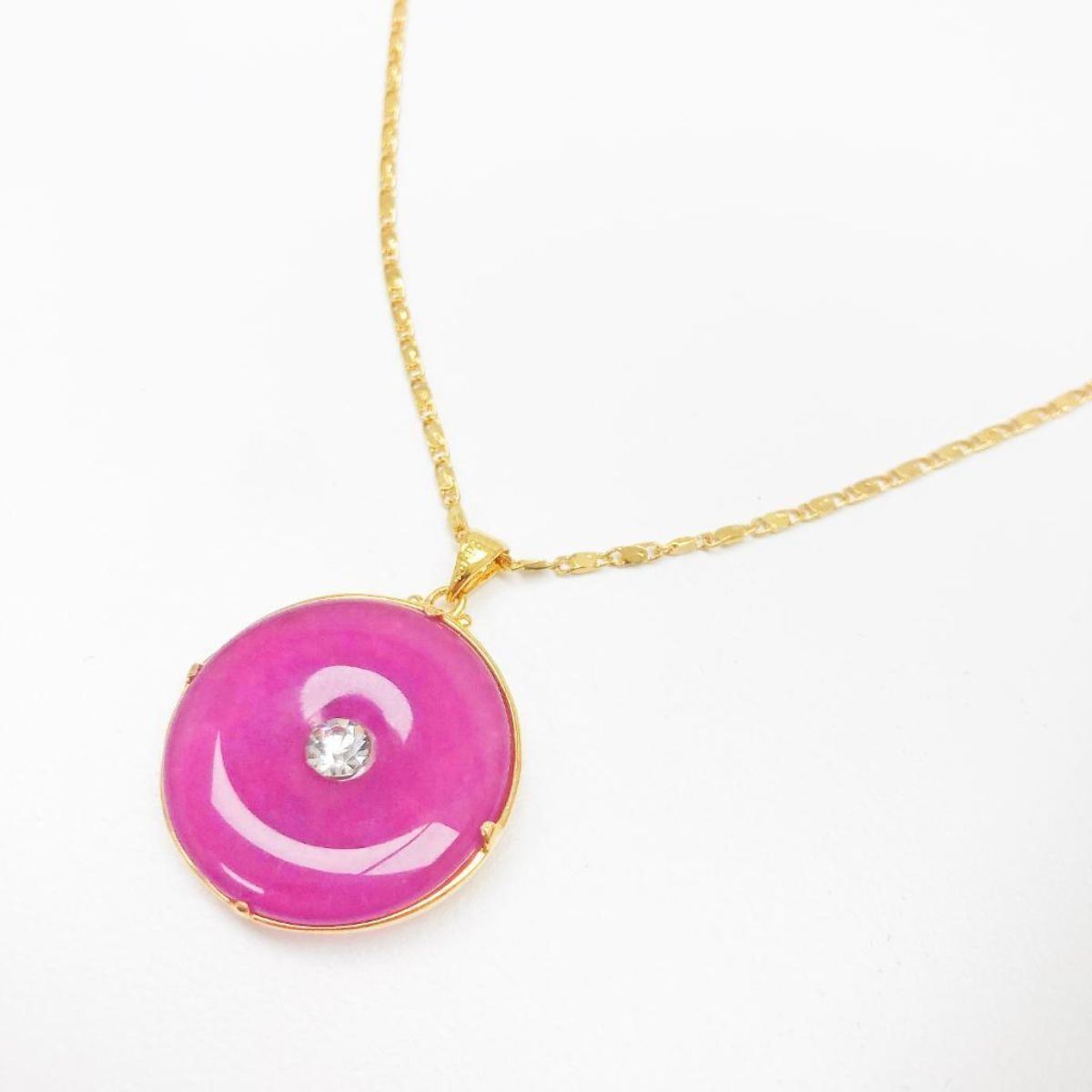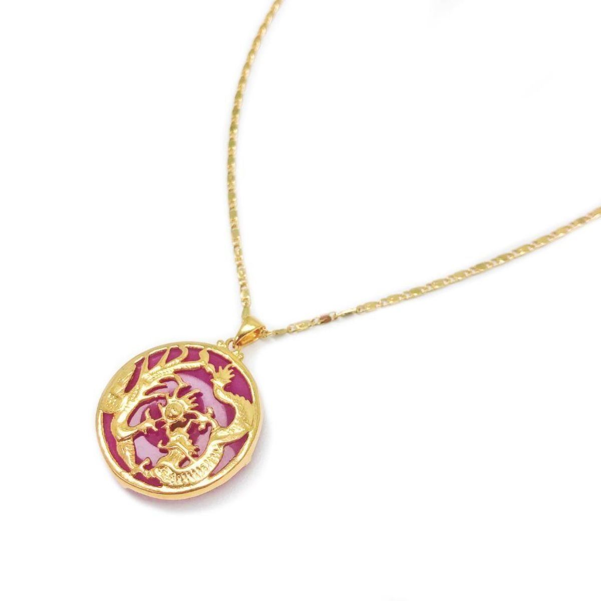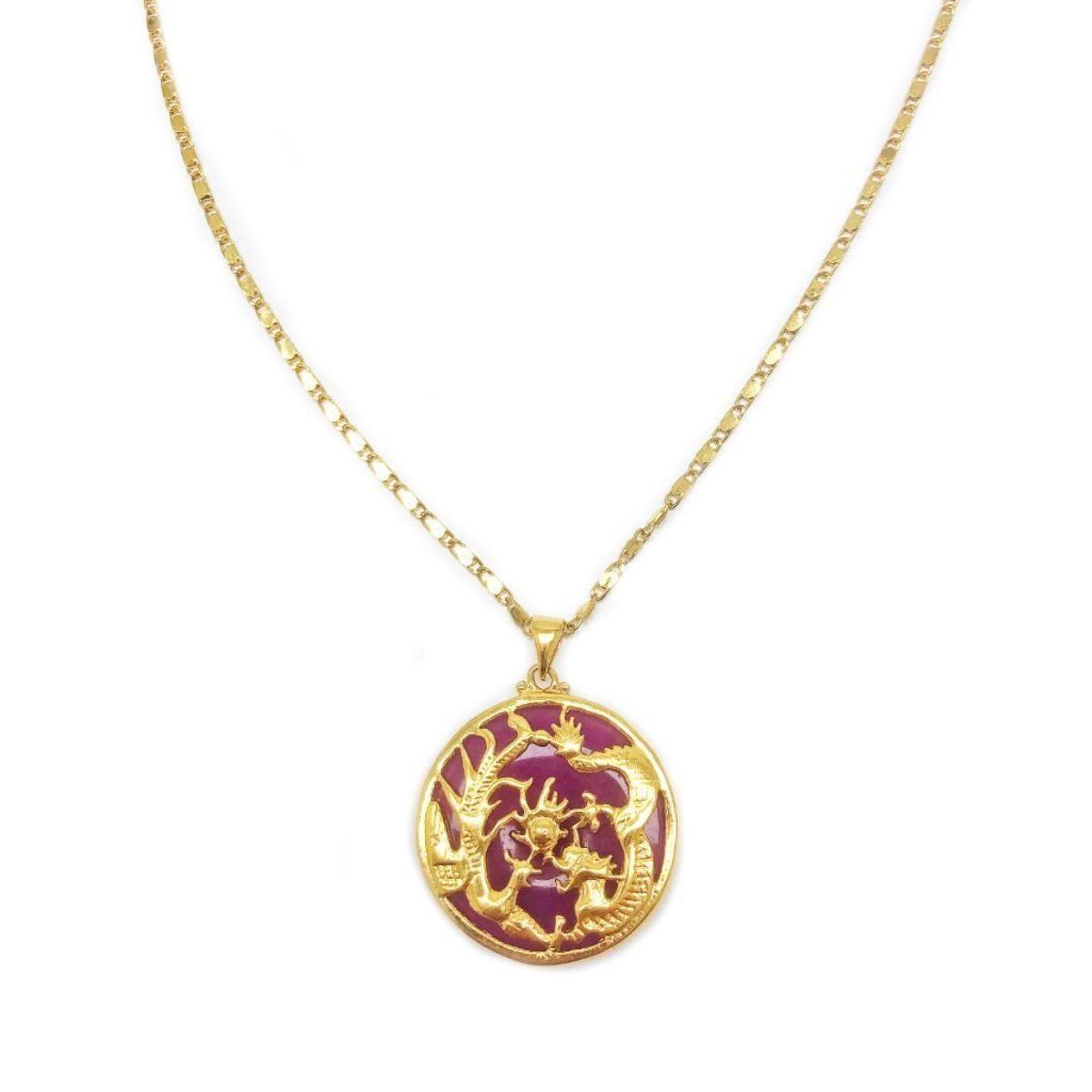 Chinese Purple Jade Dragon And The Phoenix Pendant Paired With 18KGP Marked Necklace