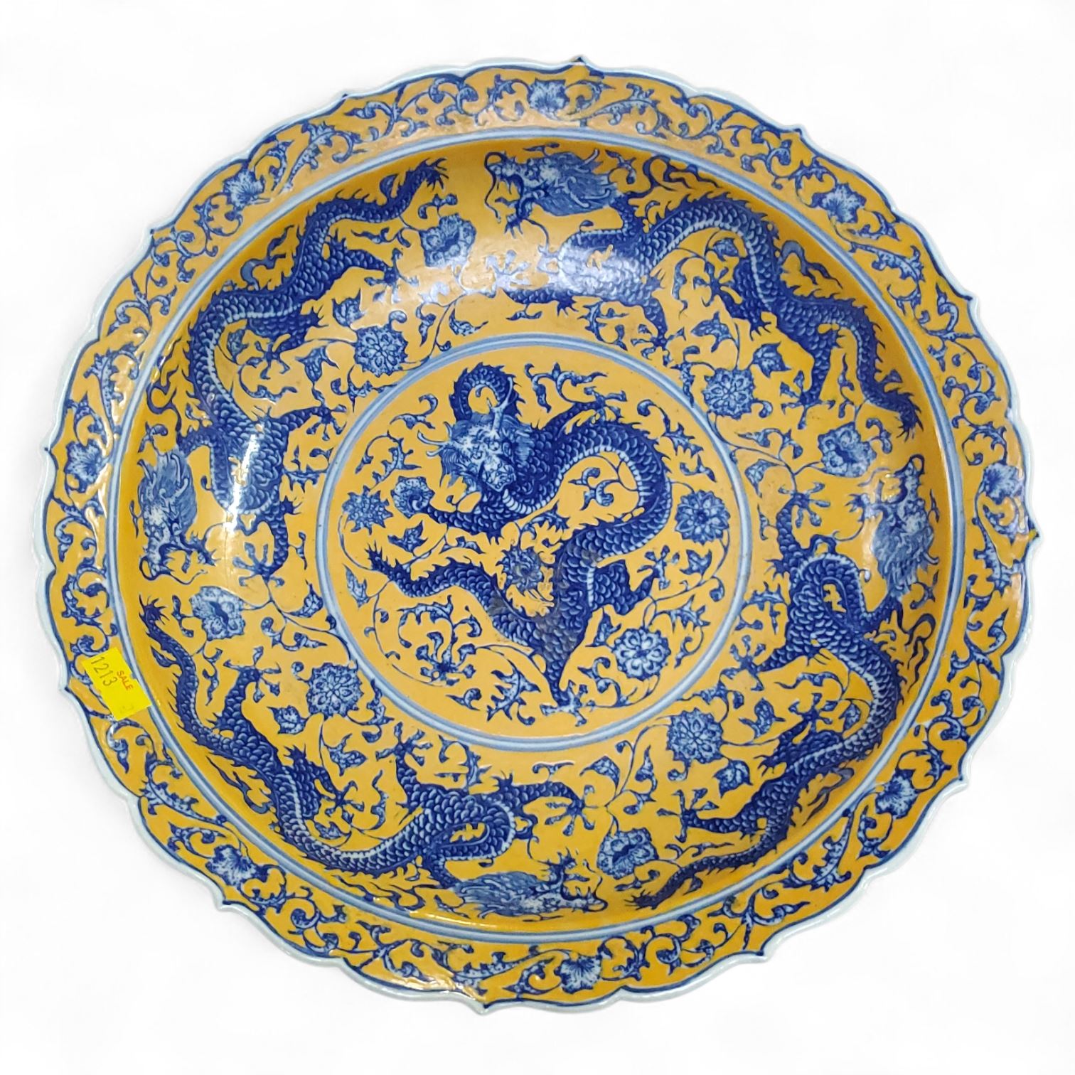 Chinese Yellow and Blue Dragon Charger, H4" x Dia. 10"