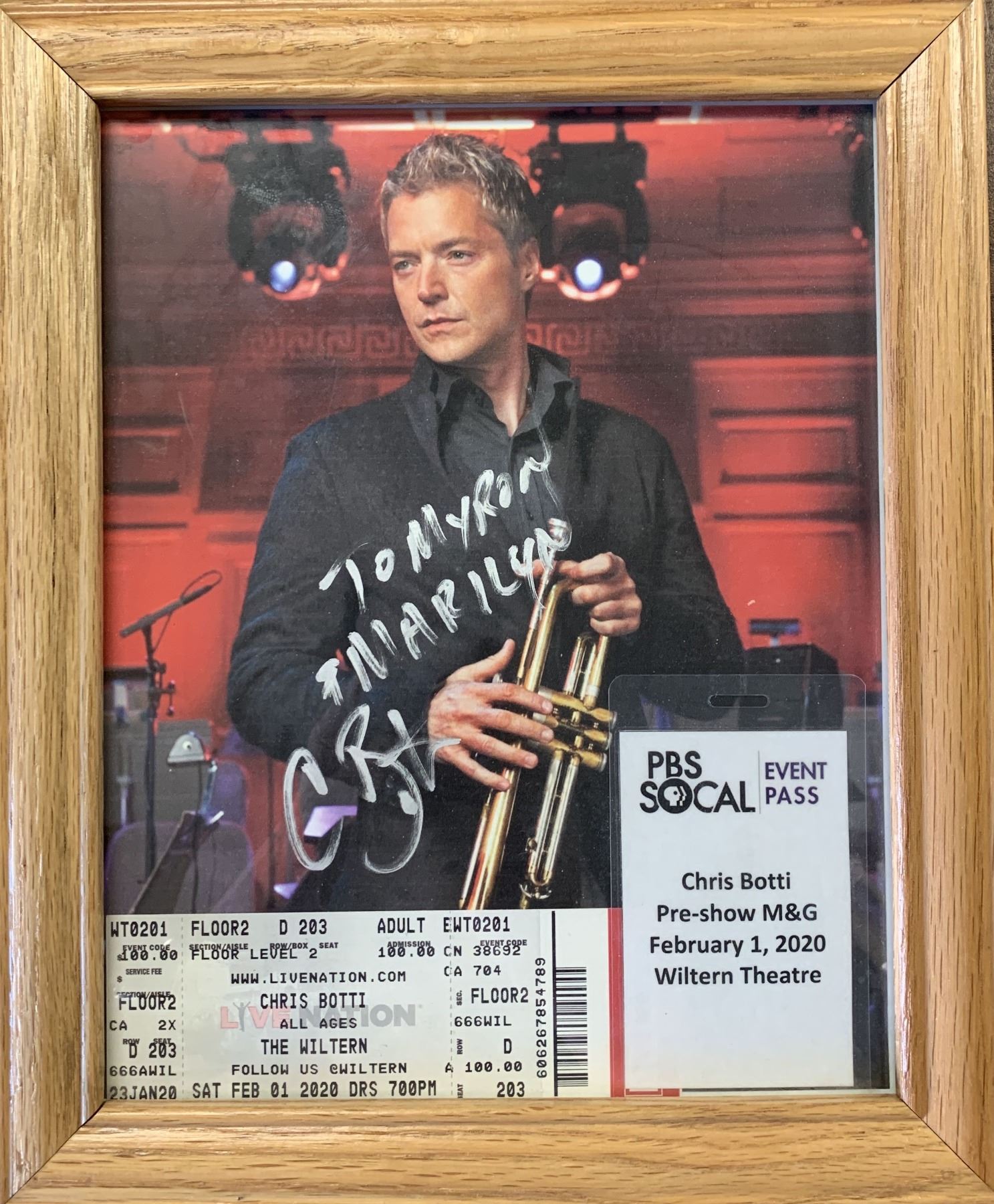 Chris Botti signed photo with ticket and event pass. 9x12 inches