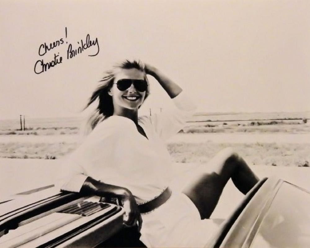 8 in. by 10 in. Christie Brinkley black and white photo autographed as Cheers! Christie Brinkley.