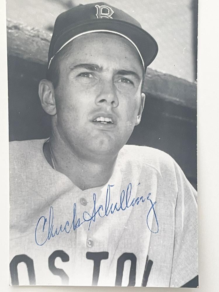 Chuck Schilling signed photo post card. 3x6 inches
