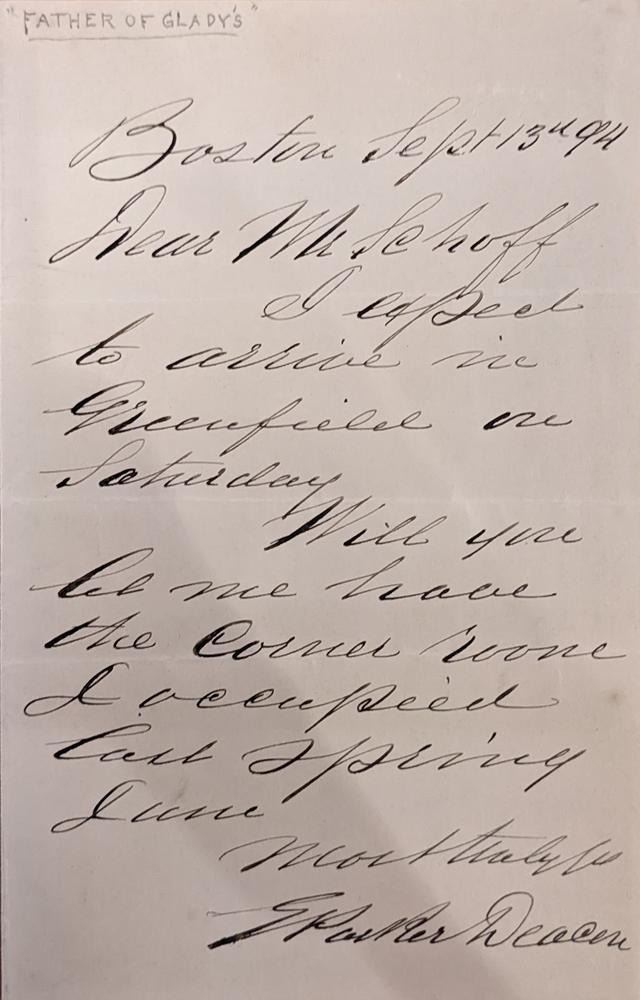 Church Deacon S. Parker Signed Note. 1894. 5x7 inches