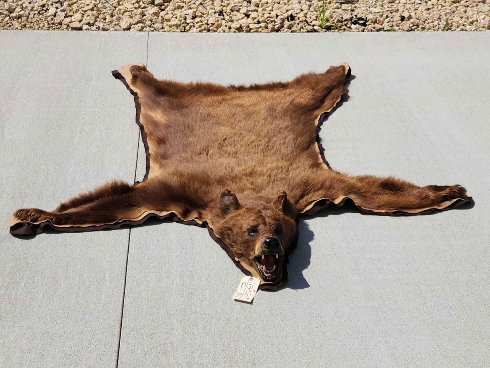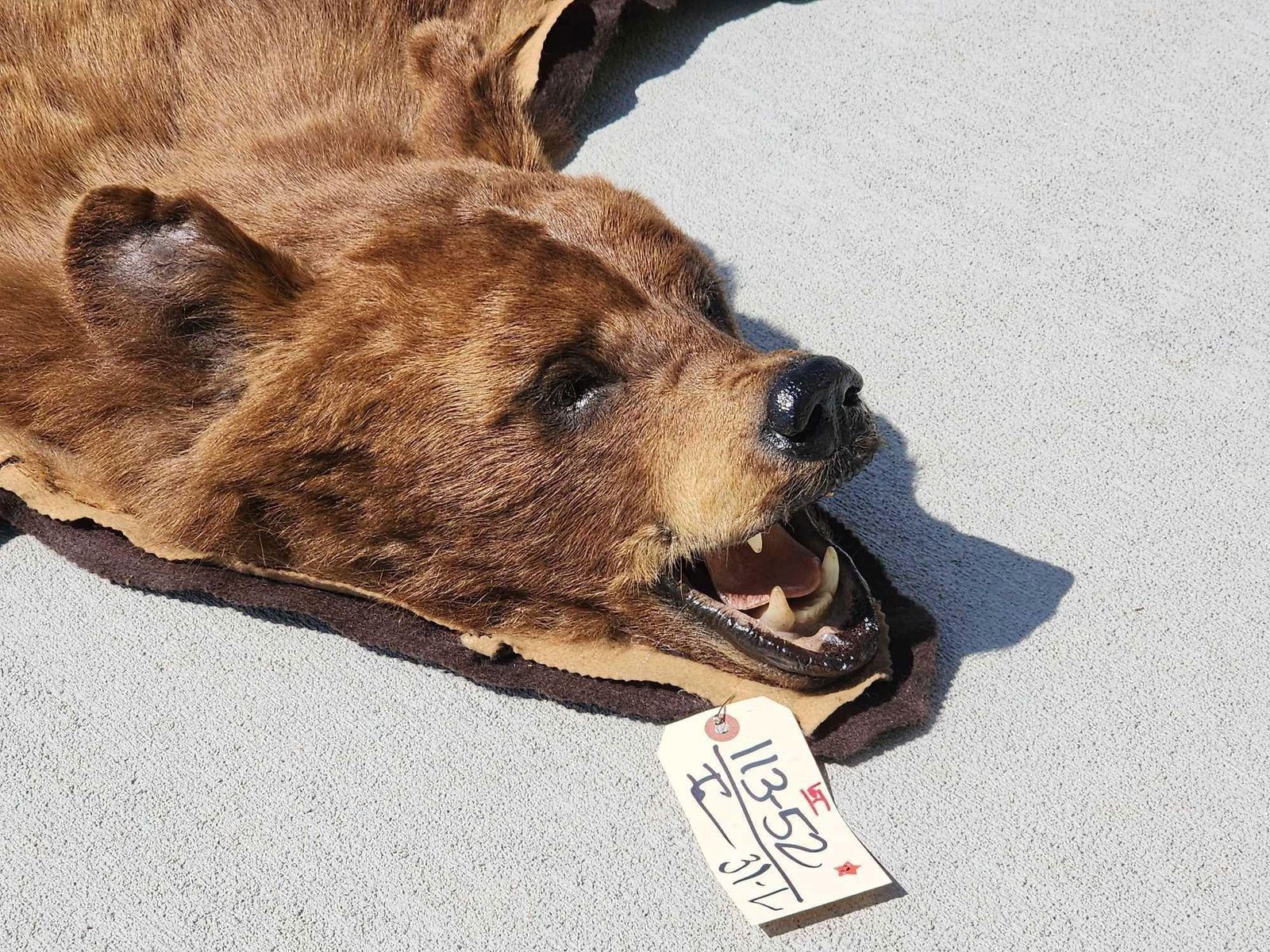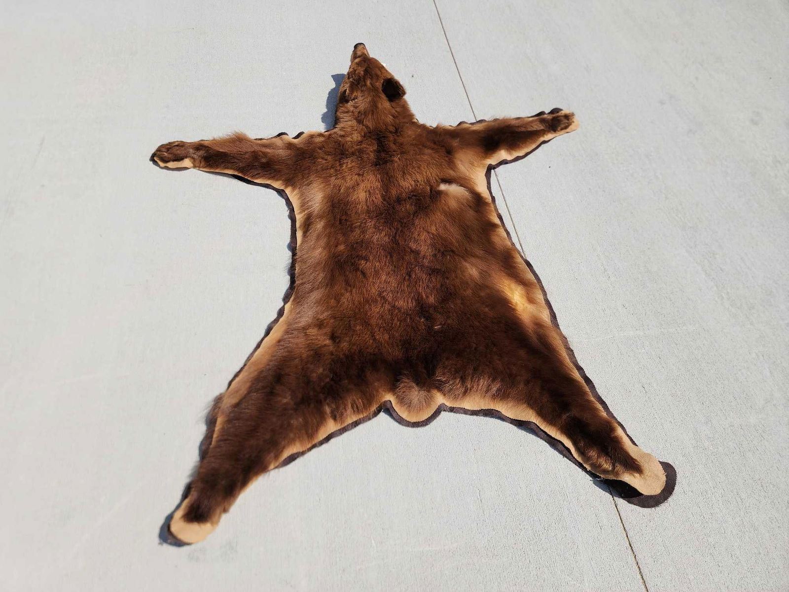113.52 Thick prime fur great colors double felt edges front claws intact back claws missing about 72" long x 62" wide