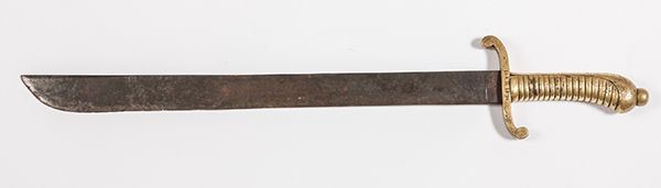 [civil War] Navy Cutlass. Total length is 39"; blade is straight and 32". Marked 100.R.10.86 on the inside quillon. A crown is at one end of the outside quillon. Oxidation to blade and some spots on the hilt. Pirates famously carried cutlasses.