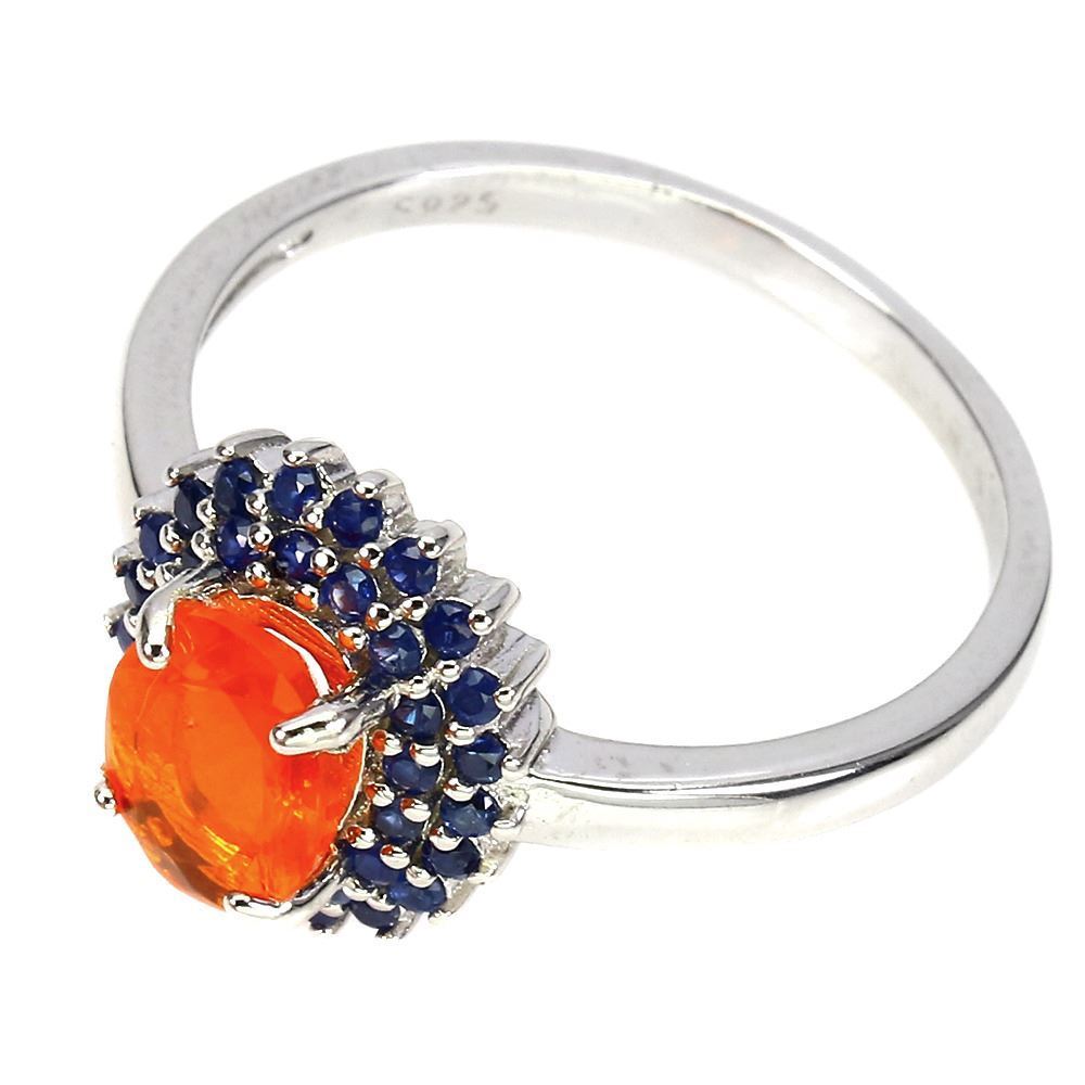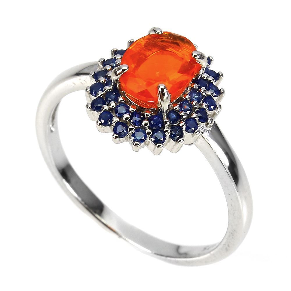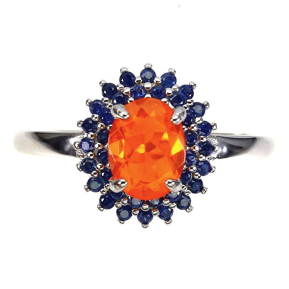 Clarity Enhanced Oval Orange Opal 8x6mm Sapphire Diamond Cut 14 K White Gold Plated 925 Sterling Sil