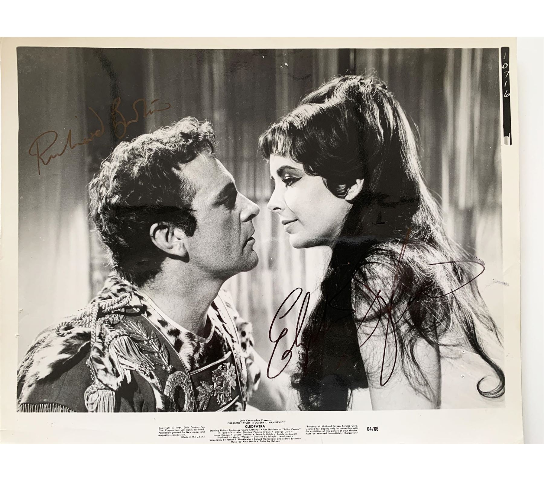 Cleopatra signed movie photo autographed by Richard Burton and Elizabeth Taylor. 8x10 inches