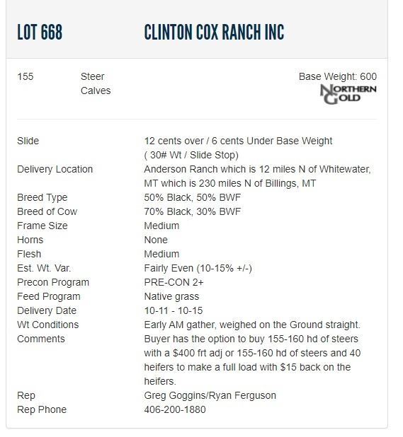 Clinton Cox Ranch Inc - 155 Steers; Base Weight: 600