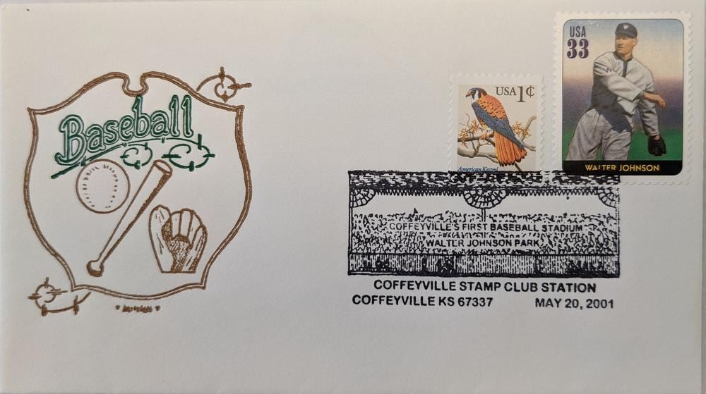 Coffeyville Stamp Club - Baseball Fist Day Cover - May 20 2001 - 4 x 6.5 inches