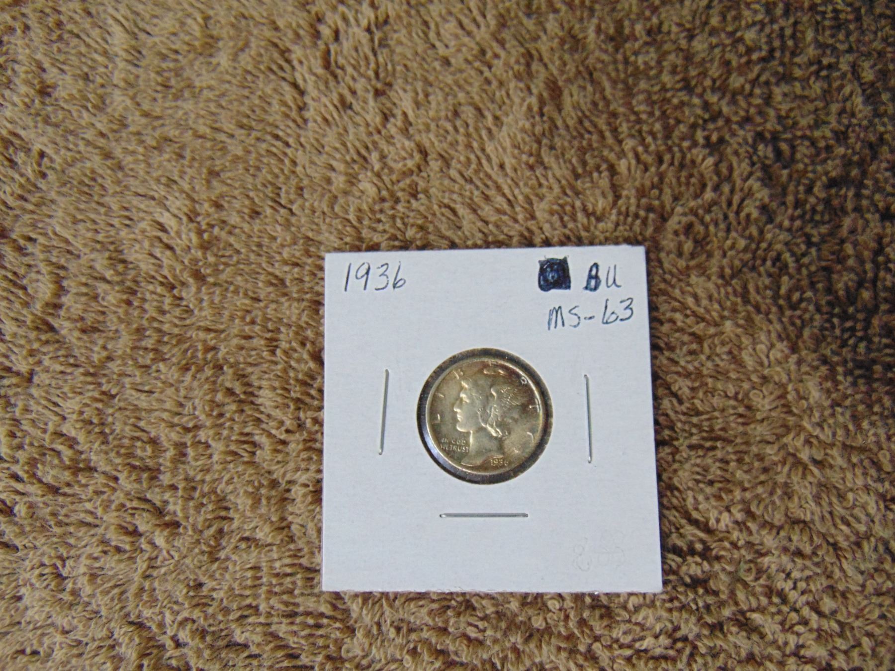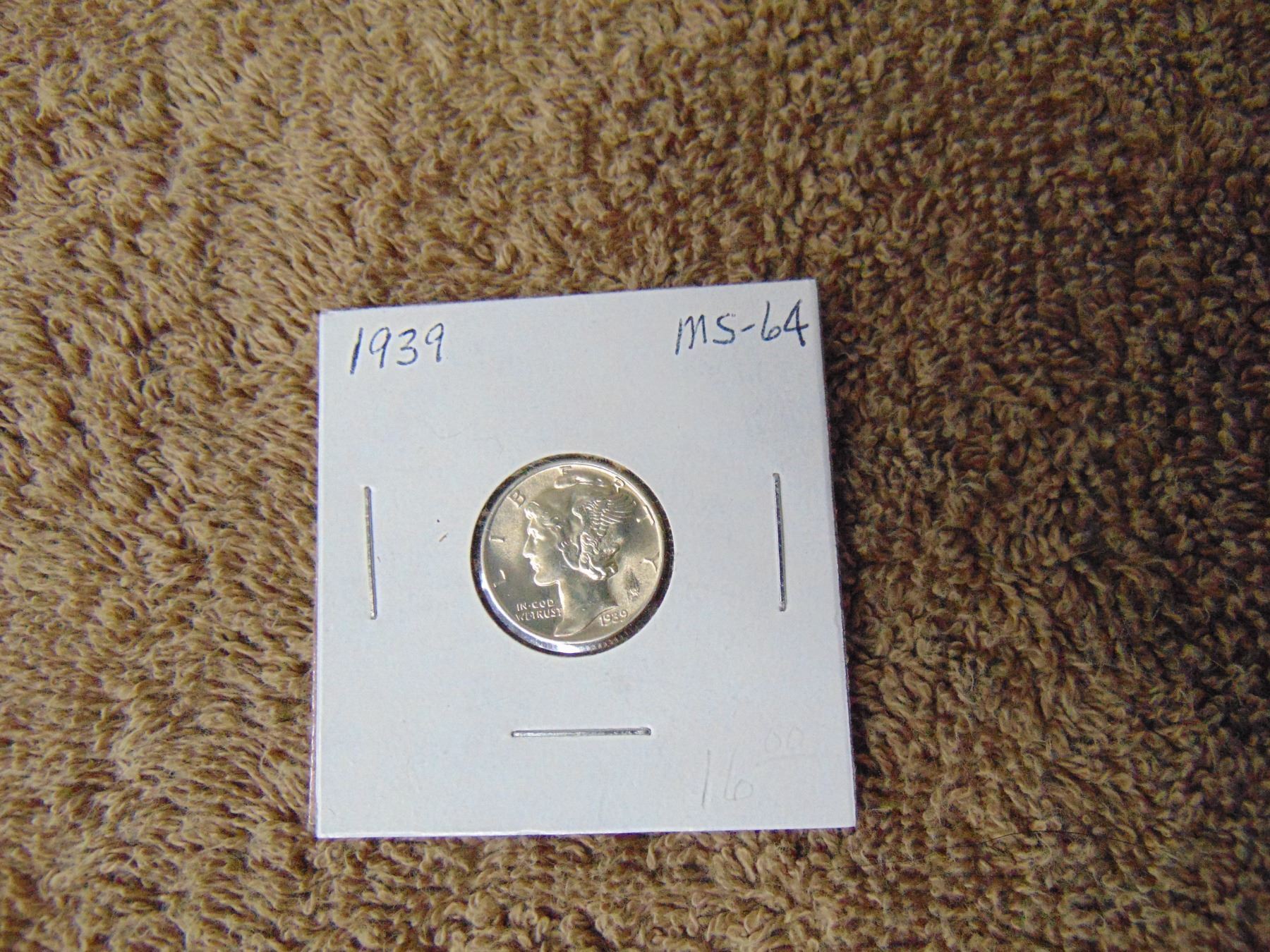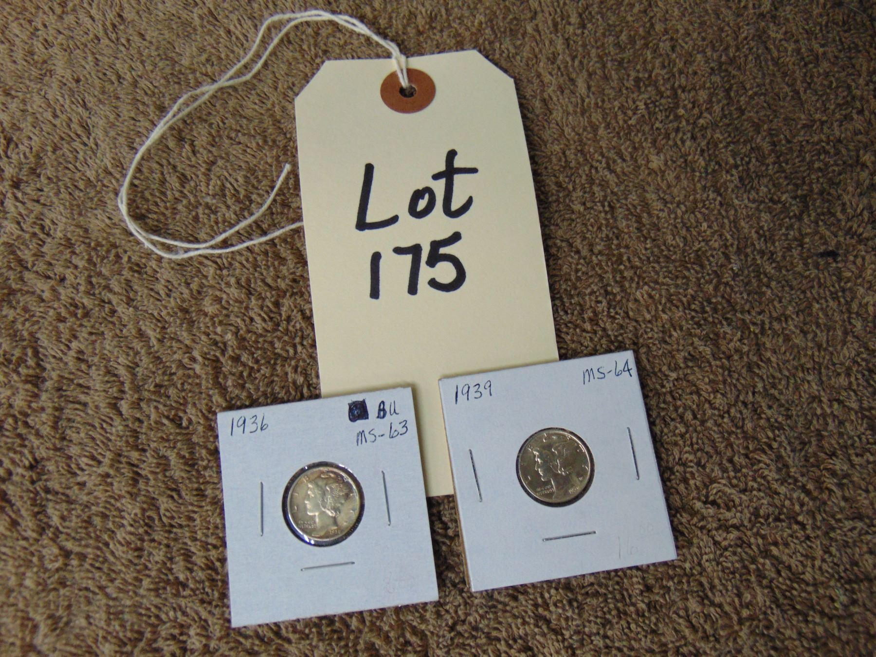 Two Mercury dimes: 1939, MS-64; 1936, MS-63