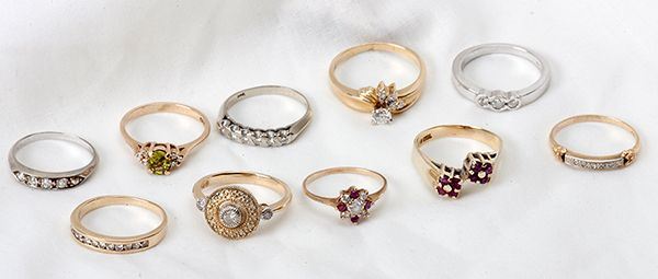 Collection of 10 Lady's Diamond, Gemstone Yellow Gold Rings