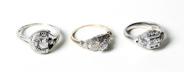 Collection of 3 Lady's Art Deco Diamond, Platinum, 14K Gold Rings