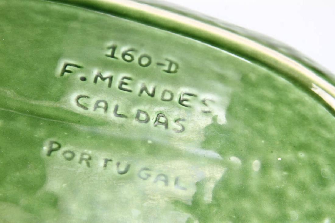 Collection of ceramic serving pieces to include: cabbage-form platter, 'F.Mendes, Portugal'; celery-form pitcher; orange pitcher marked 'Italy Made for Bergdorf Goodman'; round platter marked 'Terre Provence'; oblong lettuce leaf tray marked and dated 1983; cabbage leaf bowl marked 'Portugal', largest platter measaures 17 3/4" x 11 1/2". Provenance: Broomfield, Colorado estate.