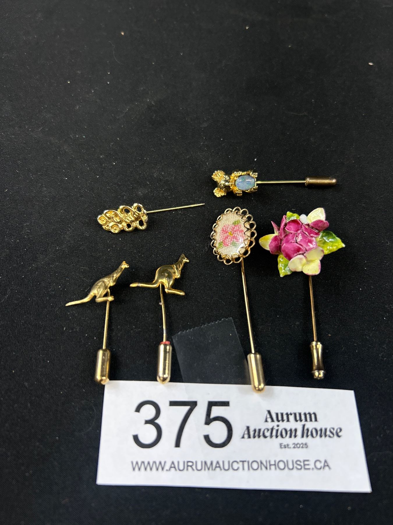 Collection of Gold Stick Pins, One w/ Genuine Australian Opal Stone