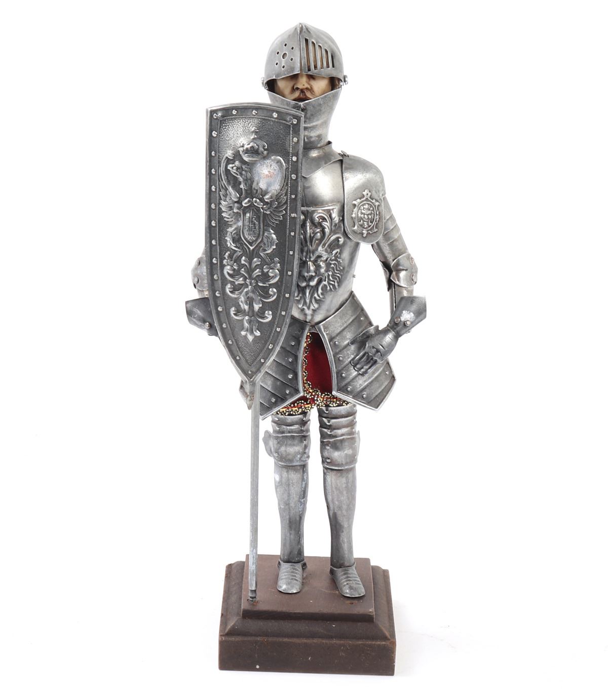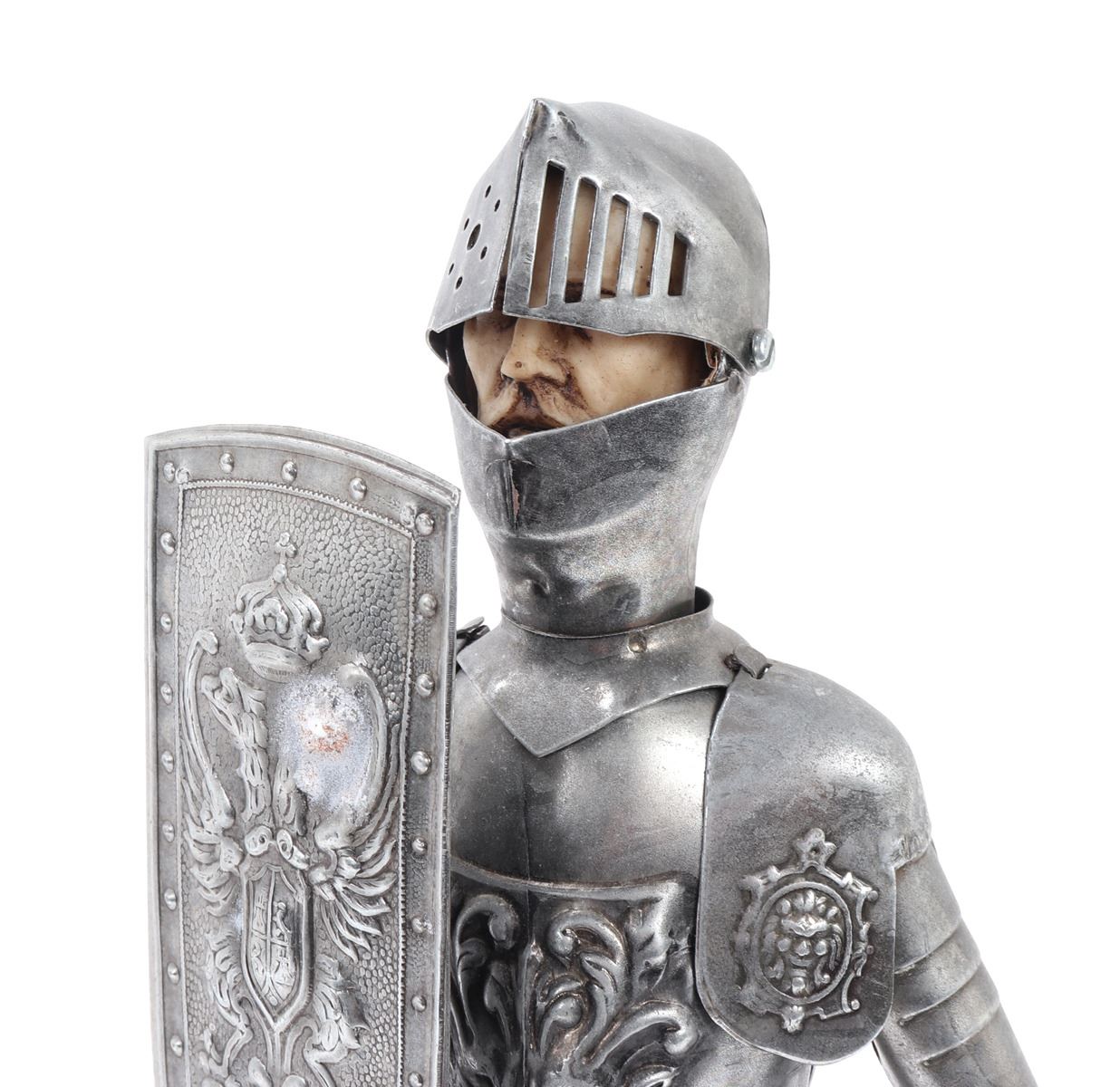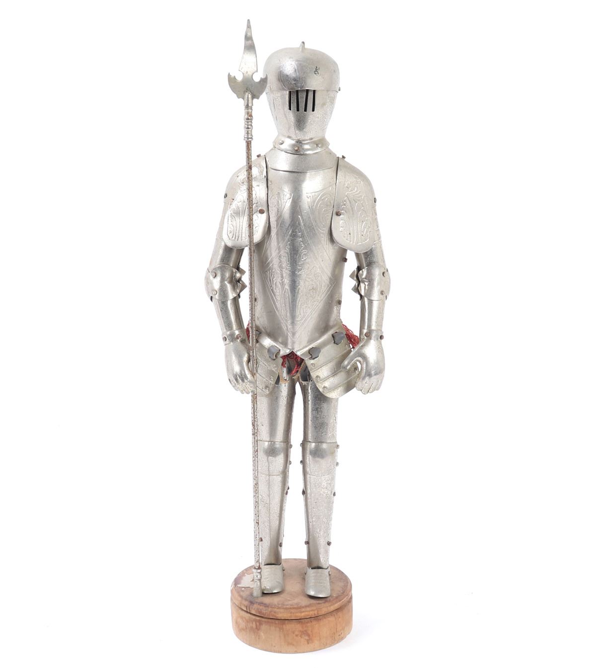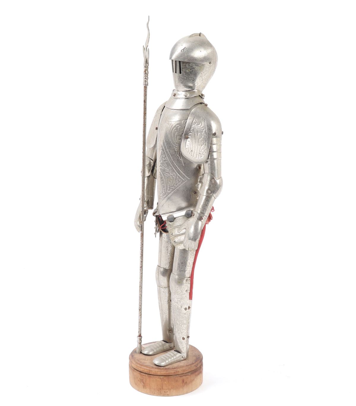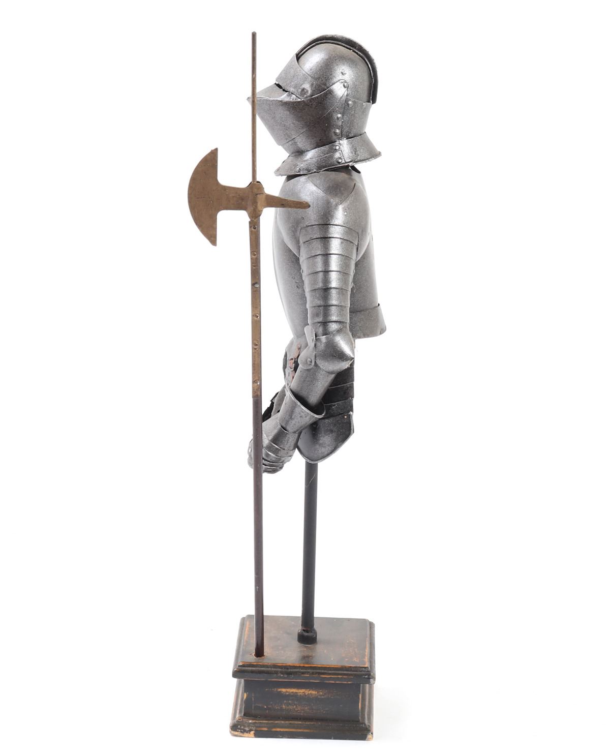 Wonderful little collection of six various miniature armors including half suits, halberds, shields, kettle hat, and chamfron. Size 17 1/4" H. Provenance: Ex-Southern California Collection