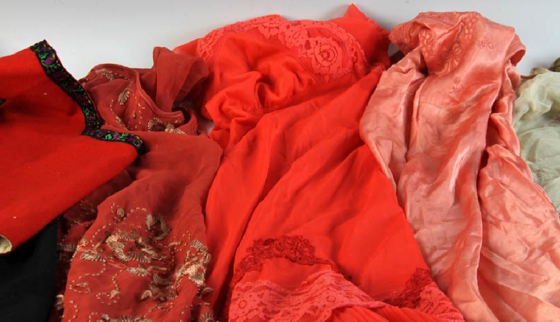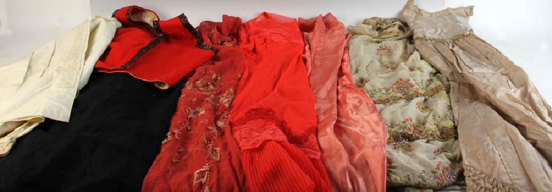 Collection of vintage clothing to include an intricately beaded flapper dress together with other flapper dresses, skirt, linen shirt, Russian folk costume, etc. Provenance: Gretna, Louisiana estate.