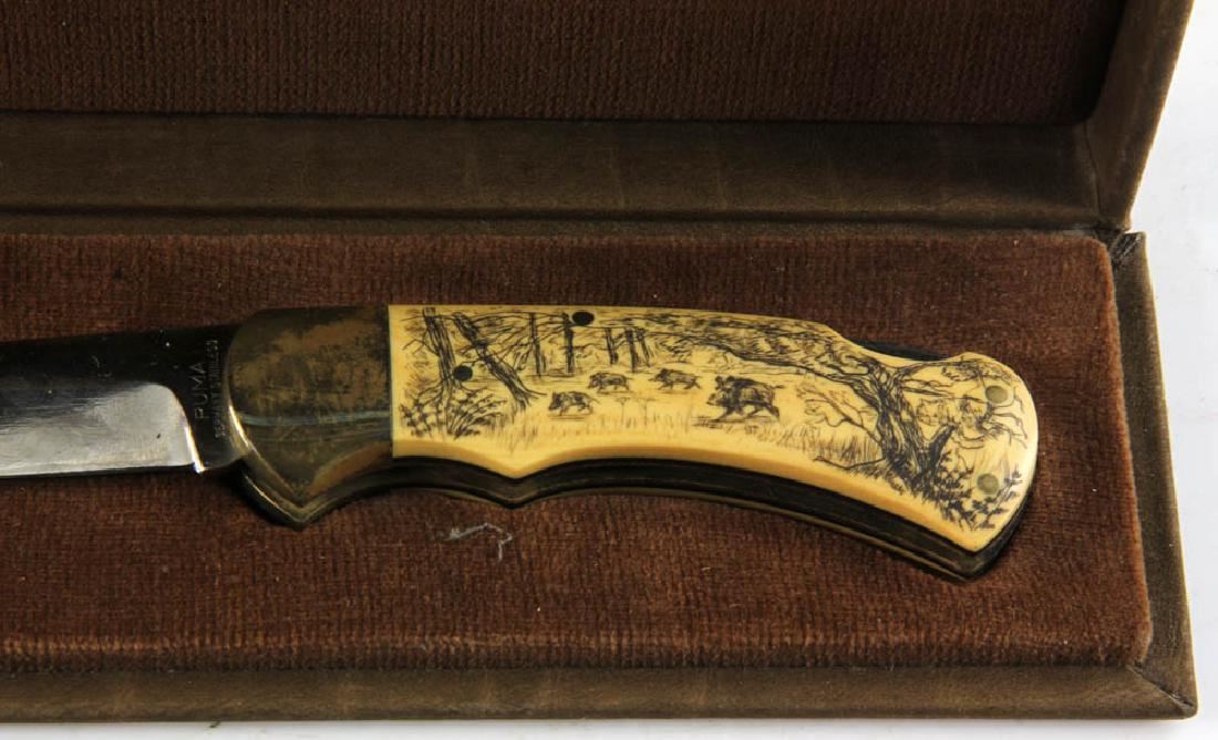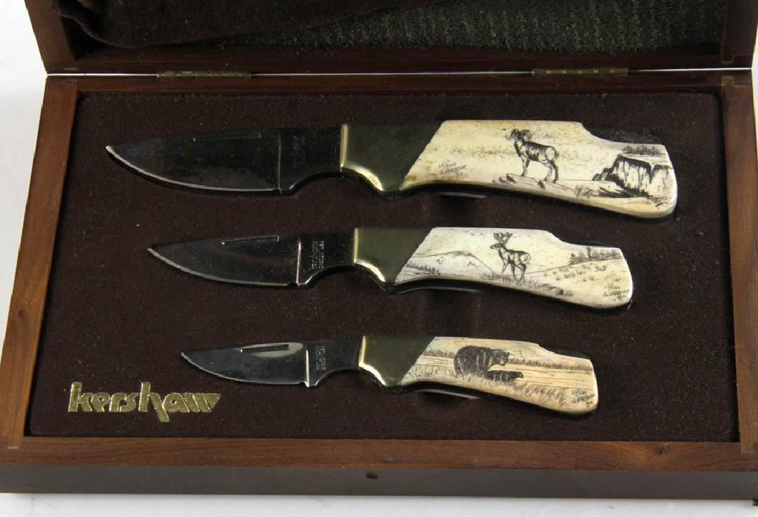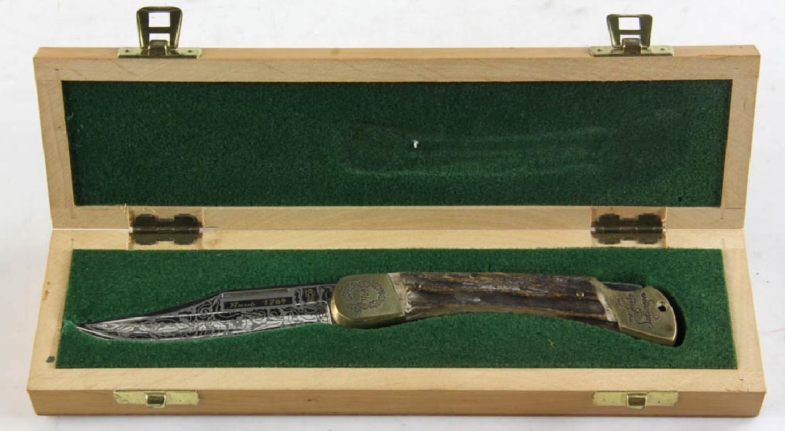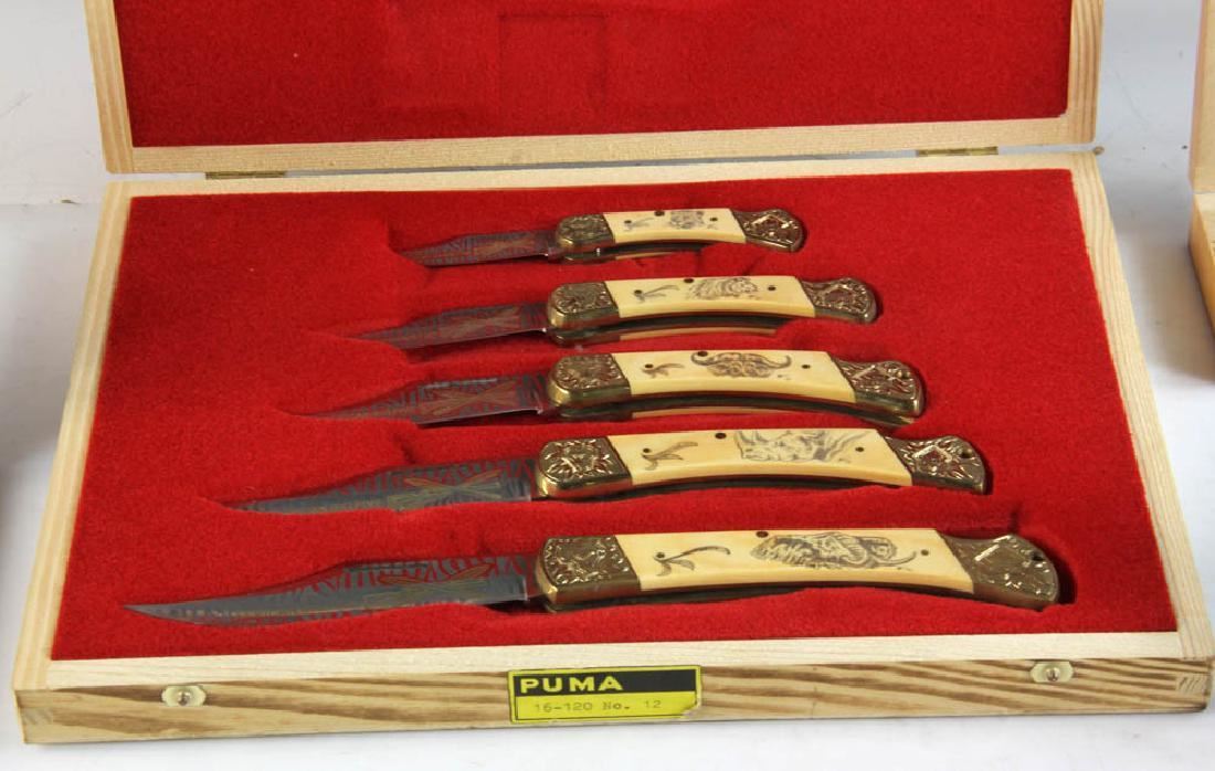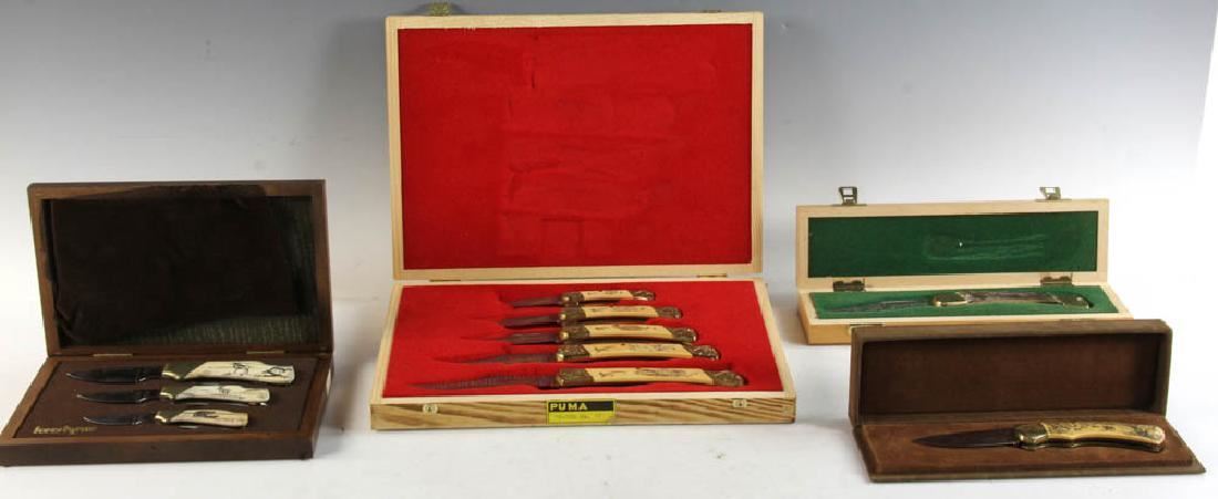 Collector's knives, four boxes with large velvet box. Provenance: National City, California estate.