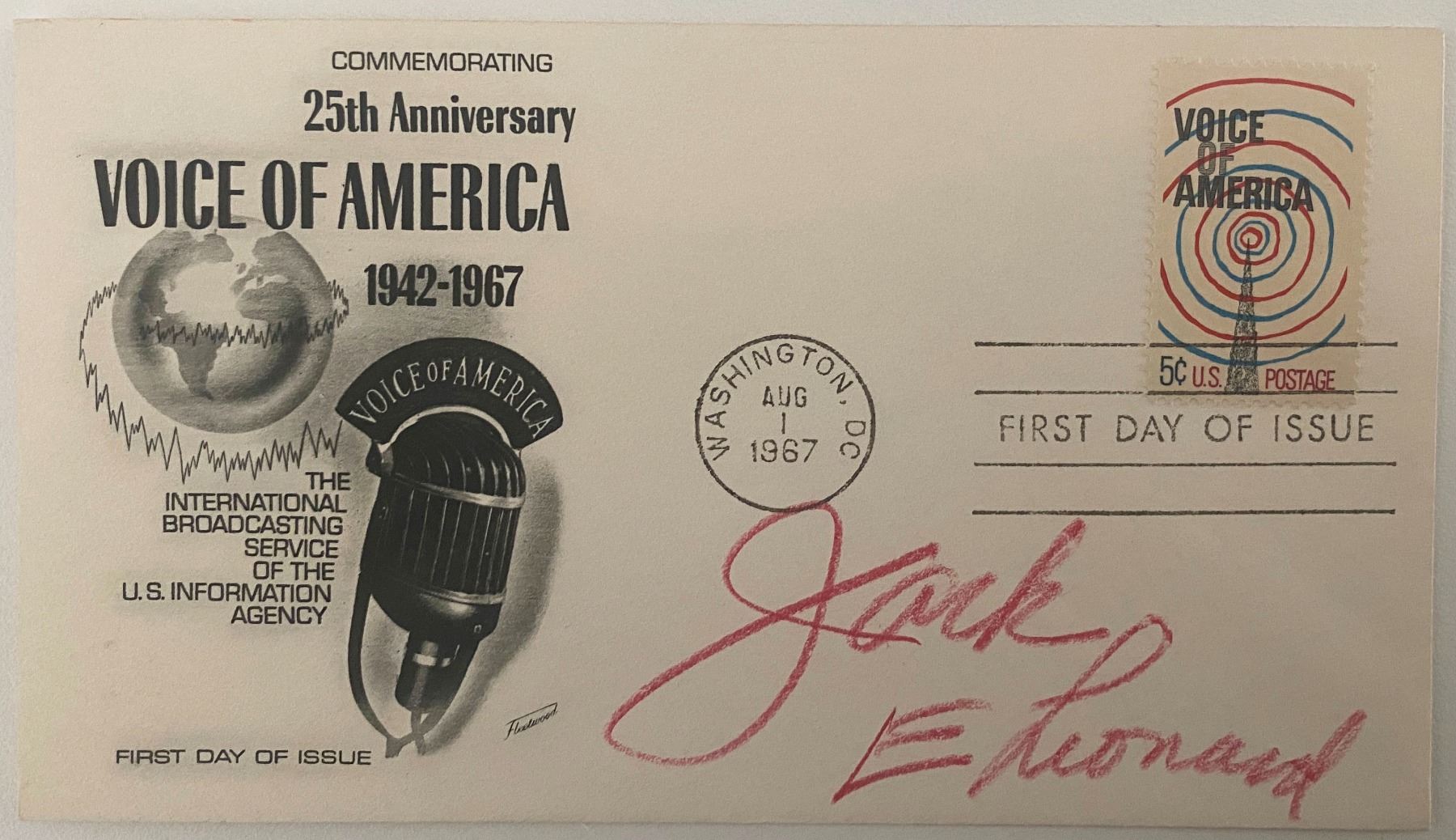 Comedian Jack E. Leonard signed 1967 first day cover - 25th Anniversary Voice of America - Washington D.C. 3x6inches