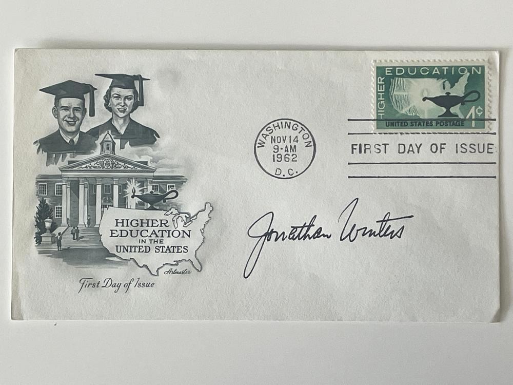 Comic actor Jonathan Winters signed cover. 3x6 inches