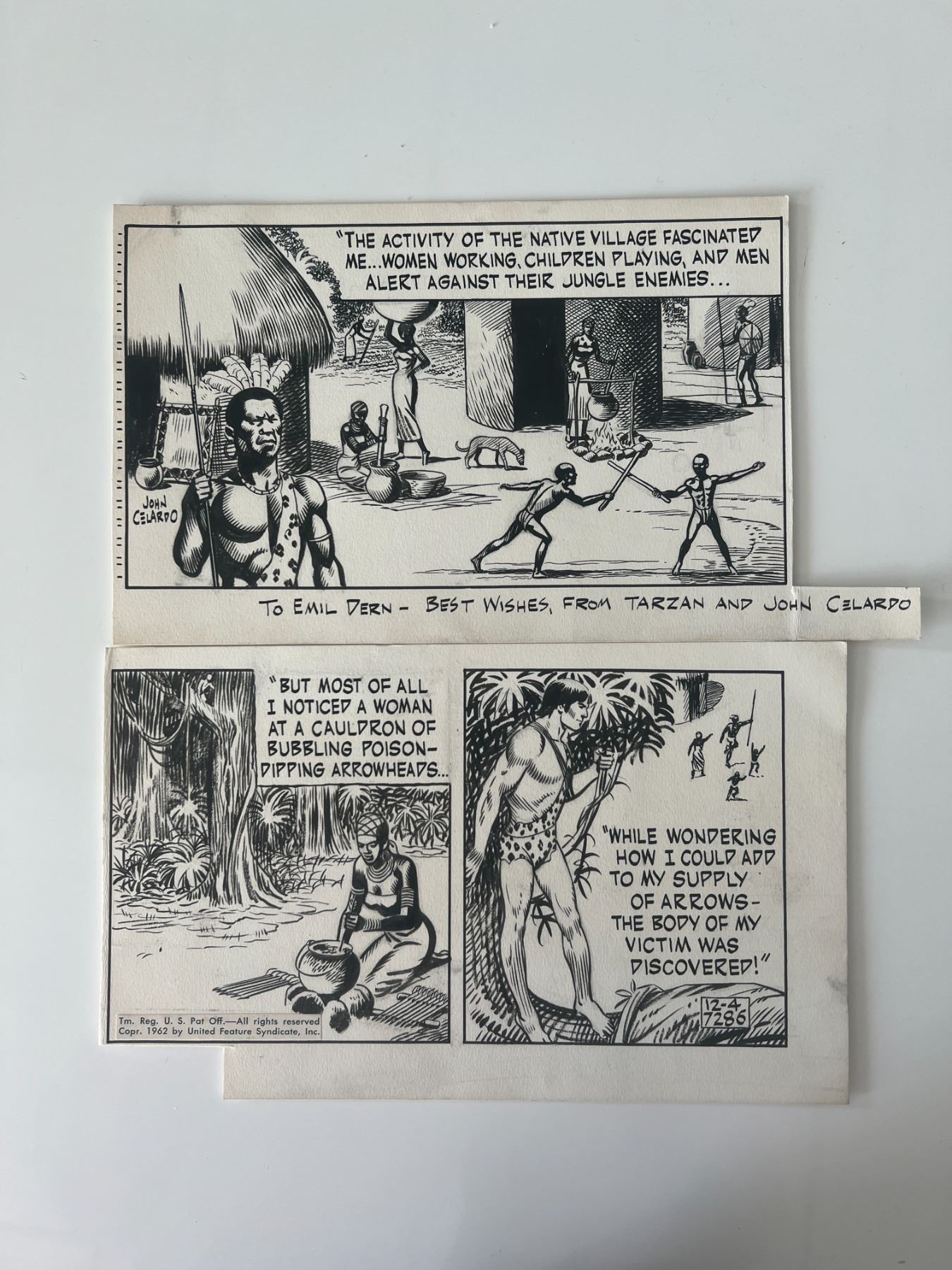 Comic strip artist John Celardo signed Tarzan panels.7x11 inches