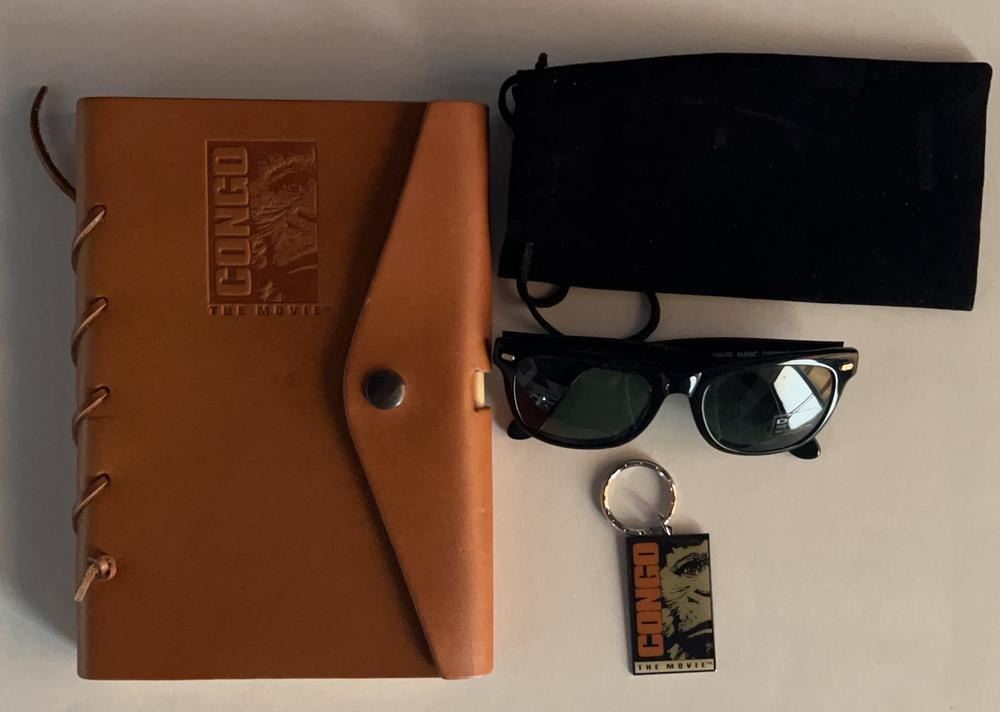 Congo promo gift pack with journal, sunglasses and key chain. 6x8 inches