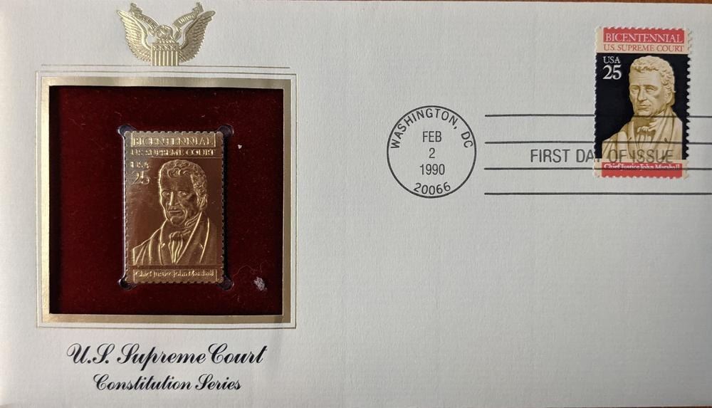 Constitution Series US Supreme Court Gold Stamp Replica First Day Cover. Washington DC Feb 2 1990