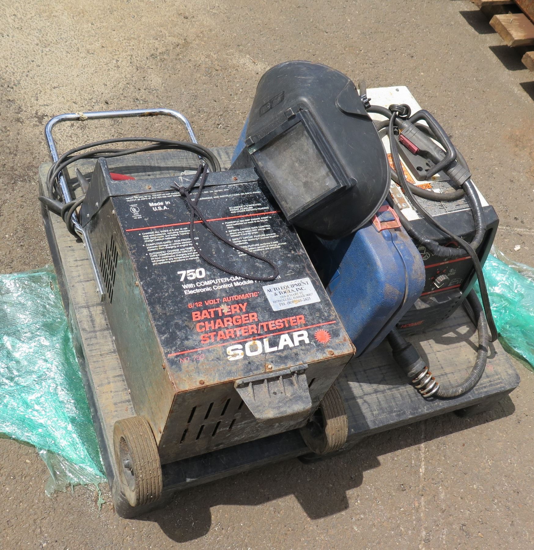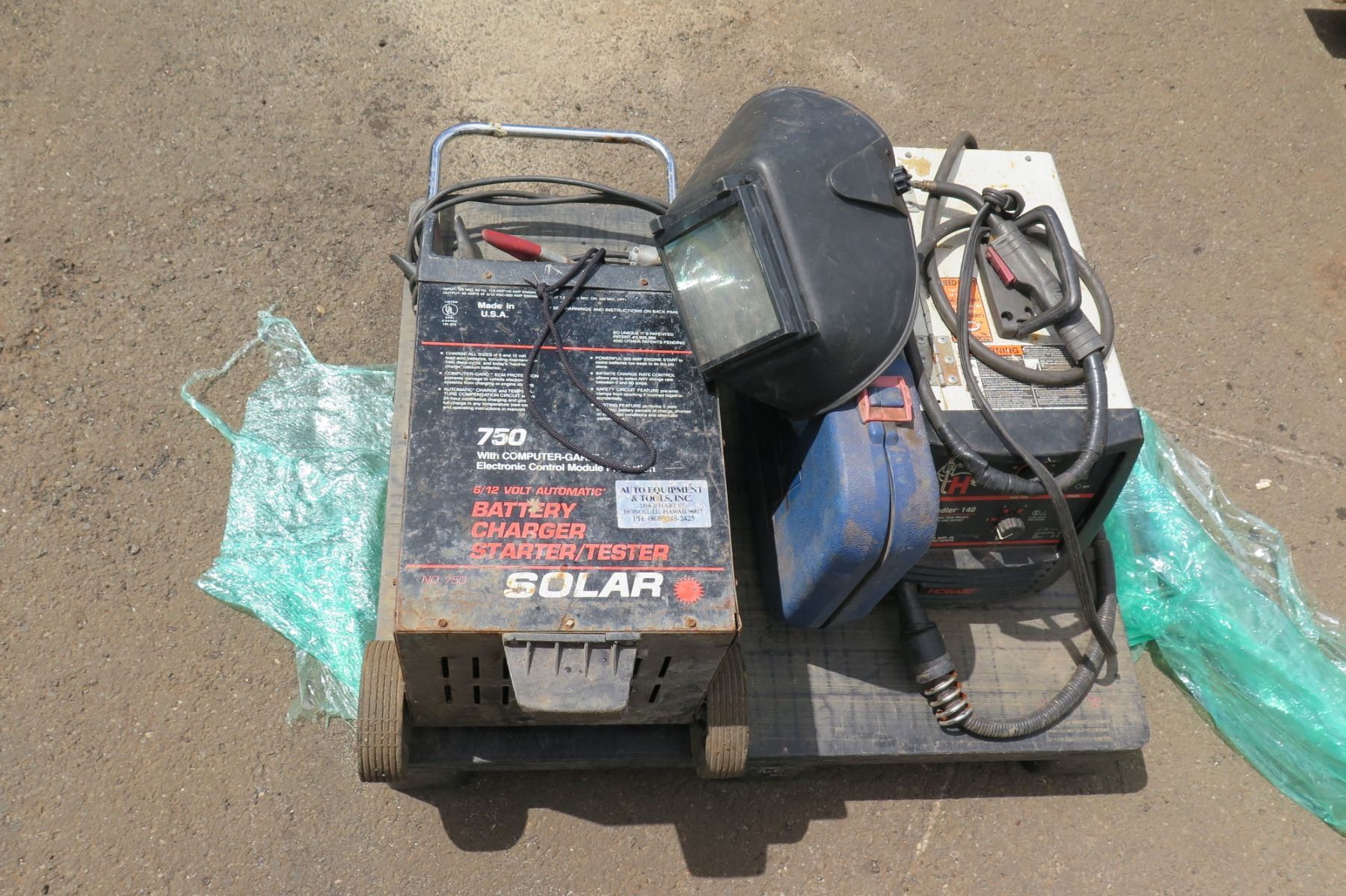 Contents of Pallet: 140 Welder, Battery Charger, Hobart Handler