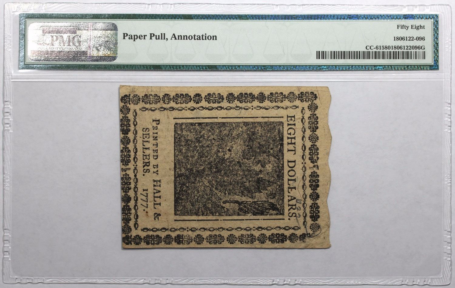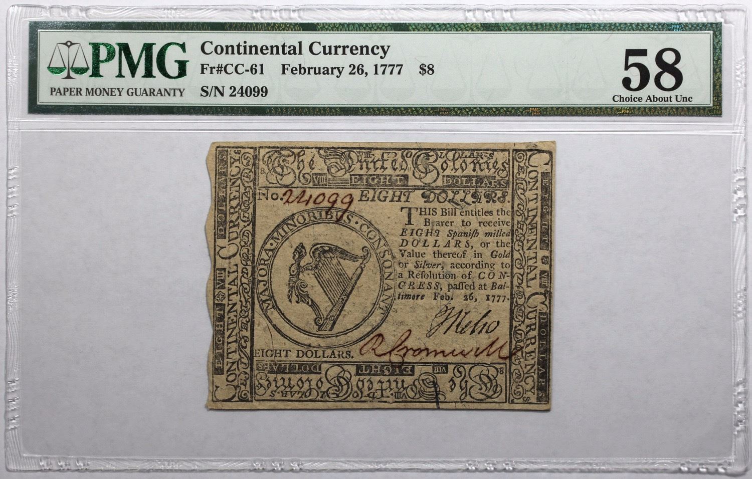 Continental Currency February 26, 1777 $8 Fr#CC-61 S/N 24099 PMG 58.
