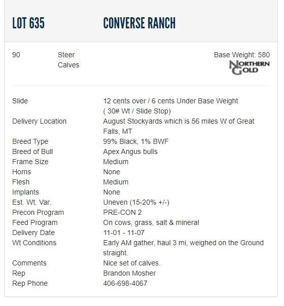 Delivery Location: August Stockyards which is 56 miles W of Great Falls, MT