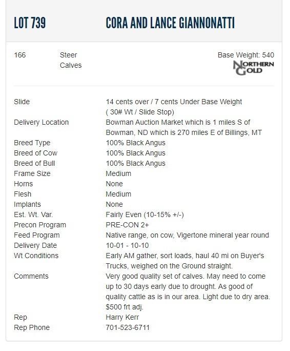 Cora and Lance Giannonatti - 166 Steers; Base Weight: 540