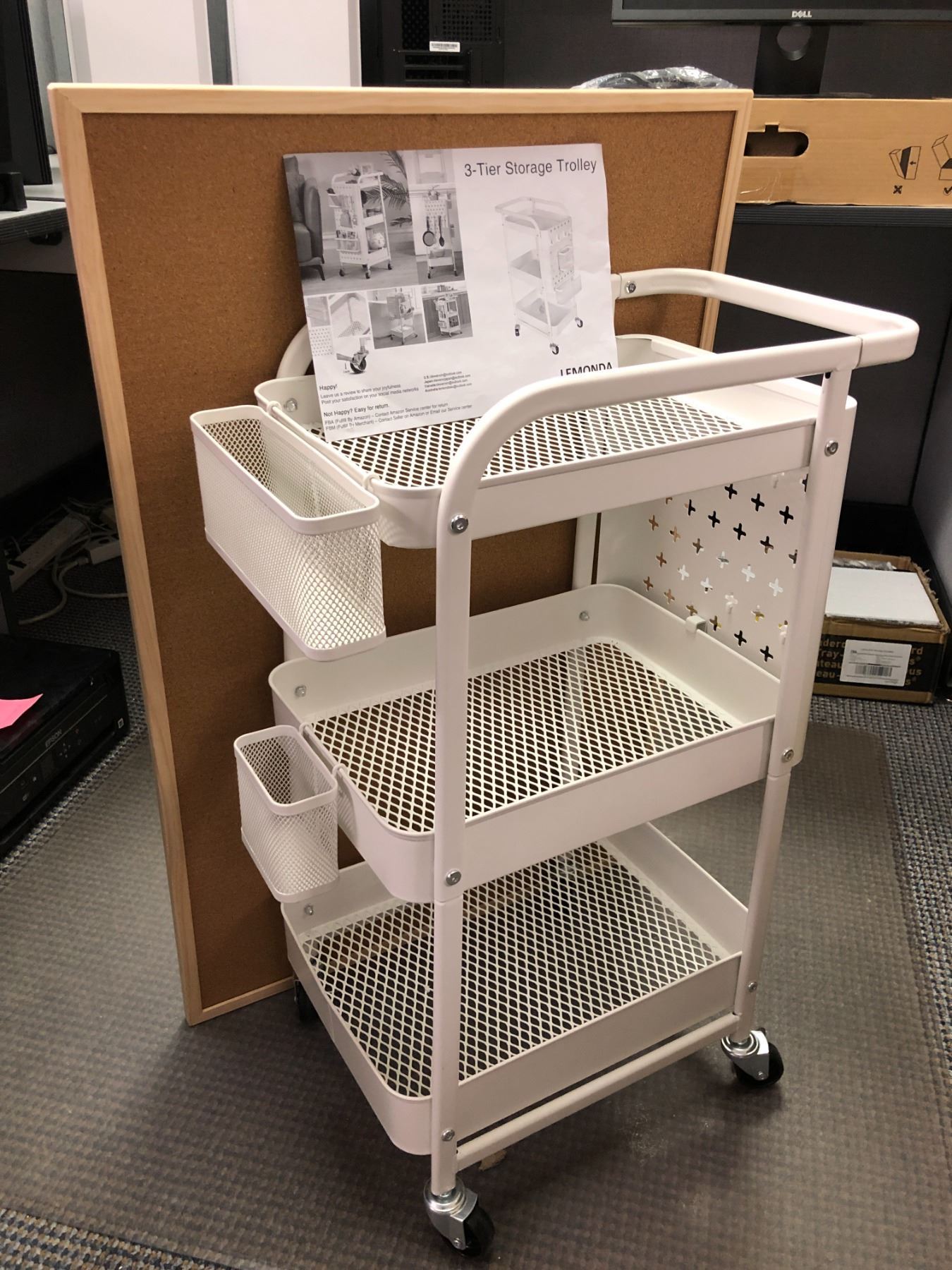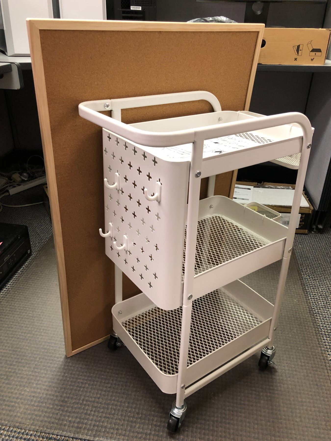 Cork Bulletin Board (approx. 24 x 36in) and 3-Tier Storage Trolley
