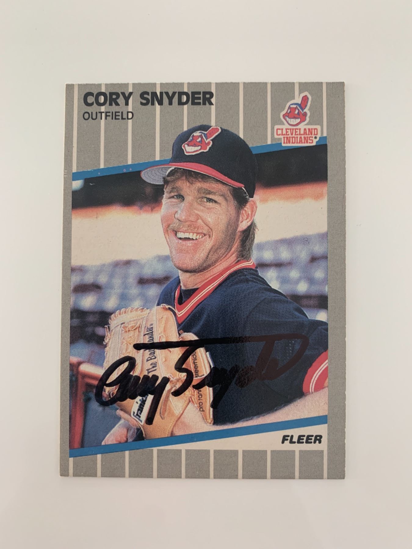 Cory Snyder signed baseball card. Fleer 1989. 2x3 inches