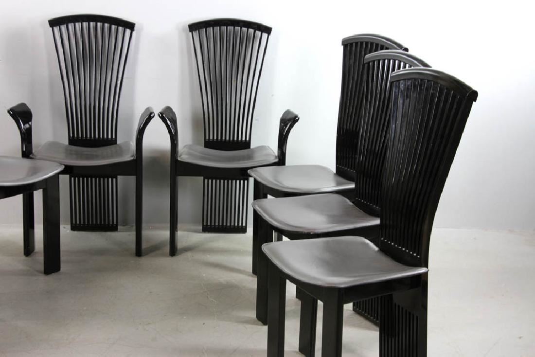 Contemporary mid-century-style Italian Costantini Pietro dining chairs with leather seats (two armchairs, six side chairs). Armchairs 42" H x 25" L x 18" D. Provenance: Lowell, Massachusetts estate.