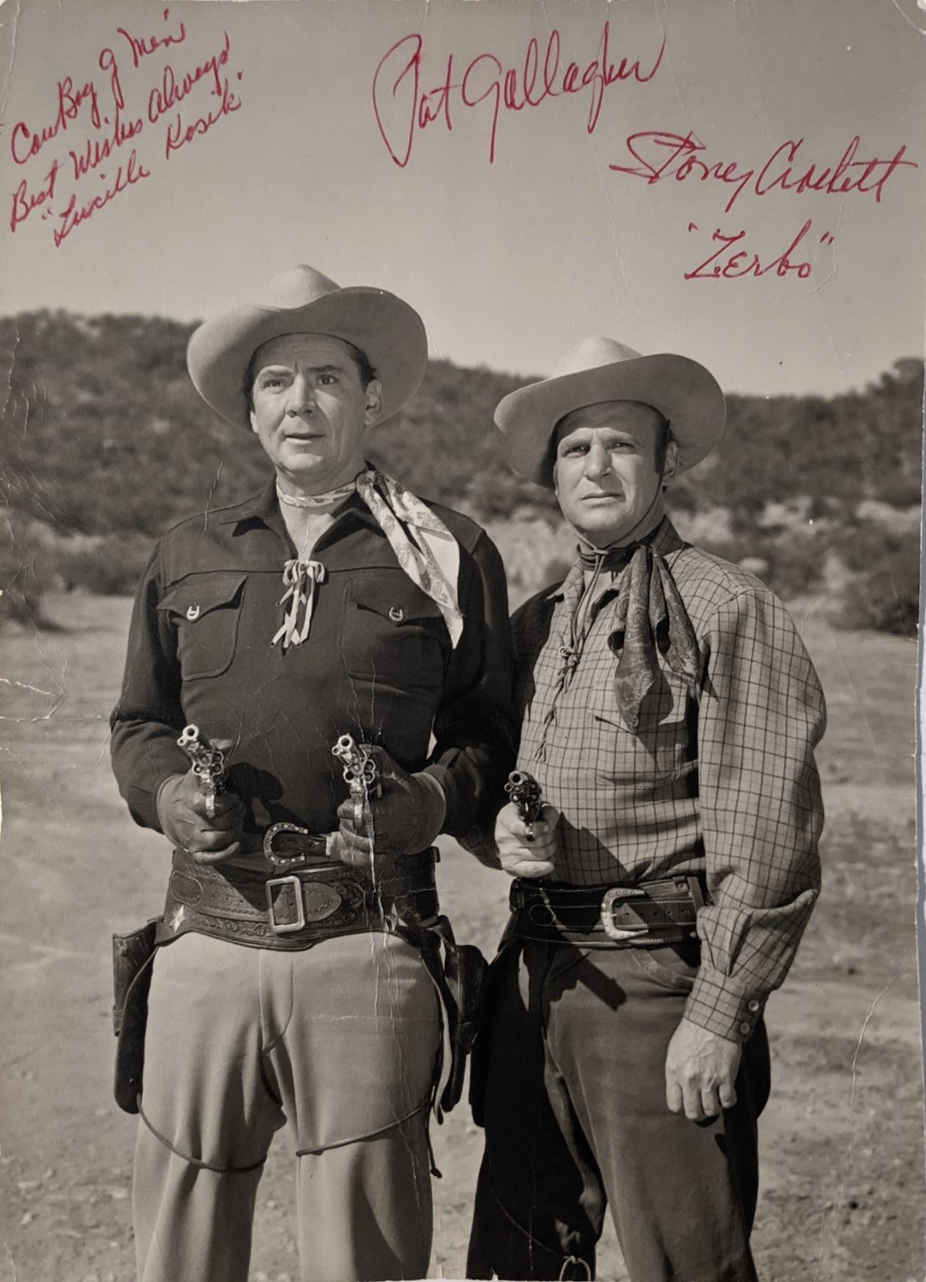 Cowboy G-Men Signed Photo autographed by Pat Gallagher and Stoney Crockett. 7x9 inches