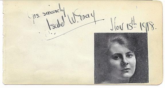 Offered here is a Isabel W. Gray Signed Album Page. A very scarce two-word sentiment and signature on an album page: "Yrs, sincerely Isabel W.