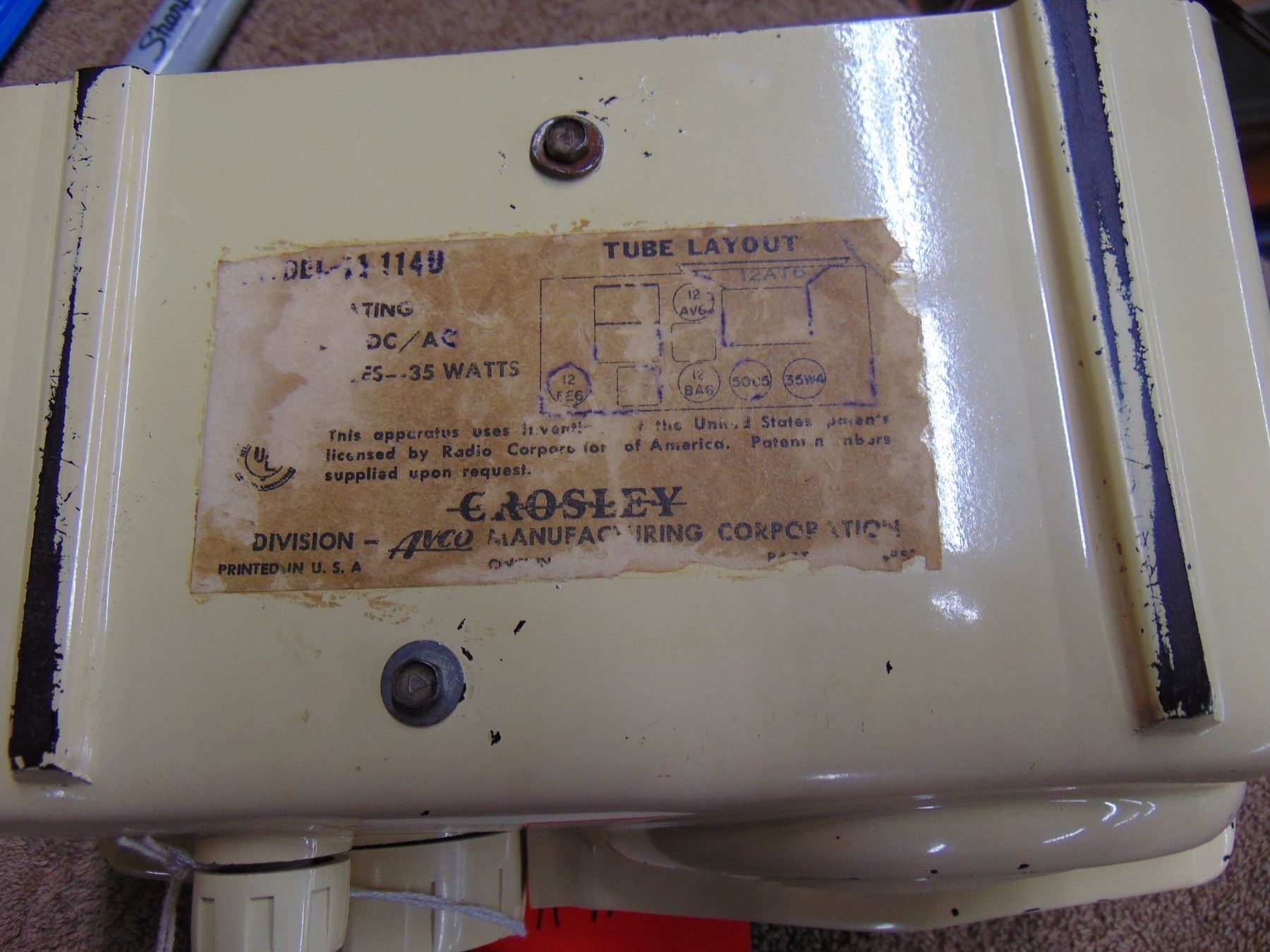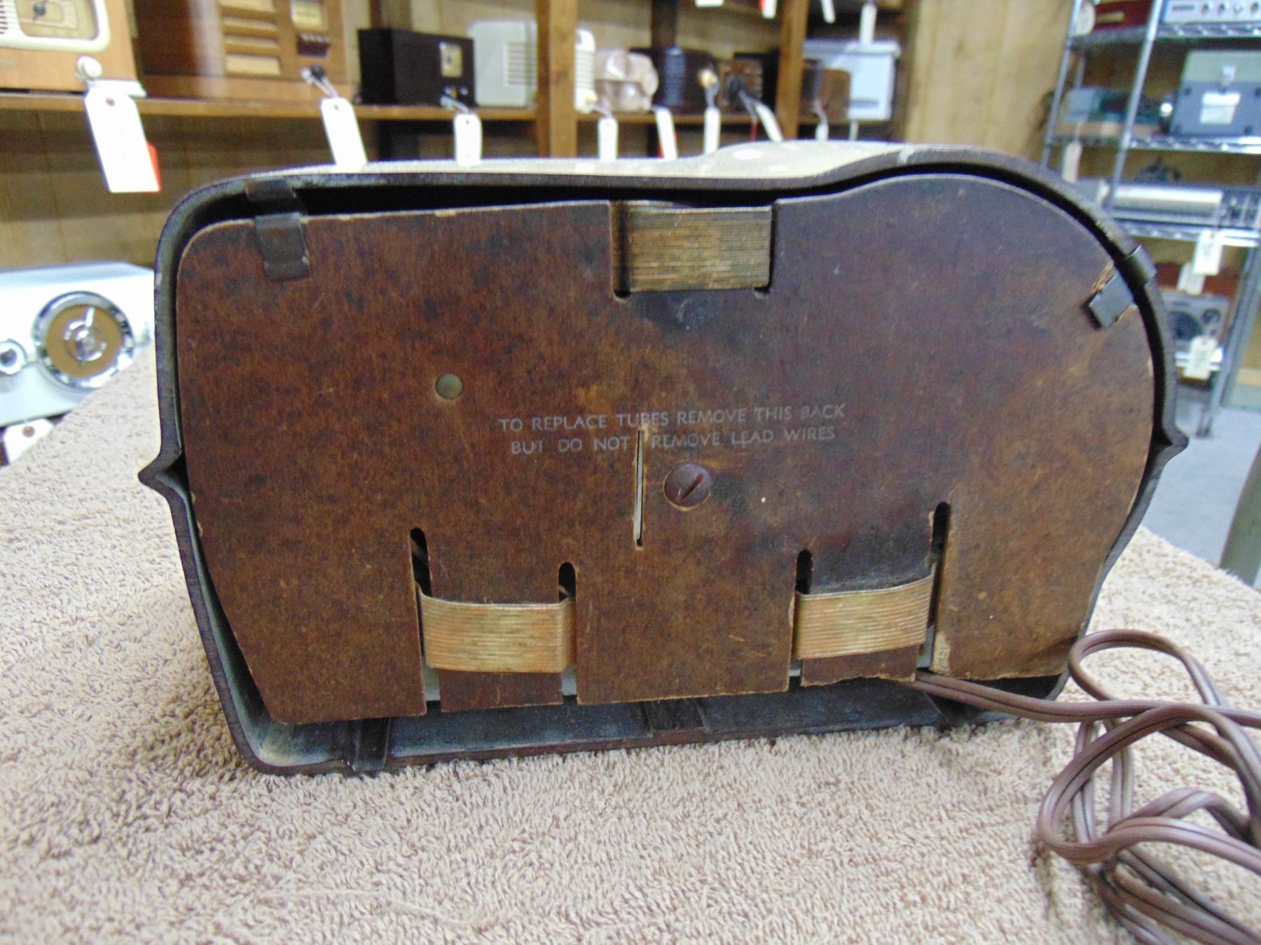 Small bakelite table set; cream color; model 11-114U; nice; with original back; works