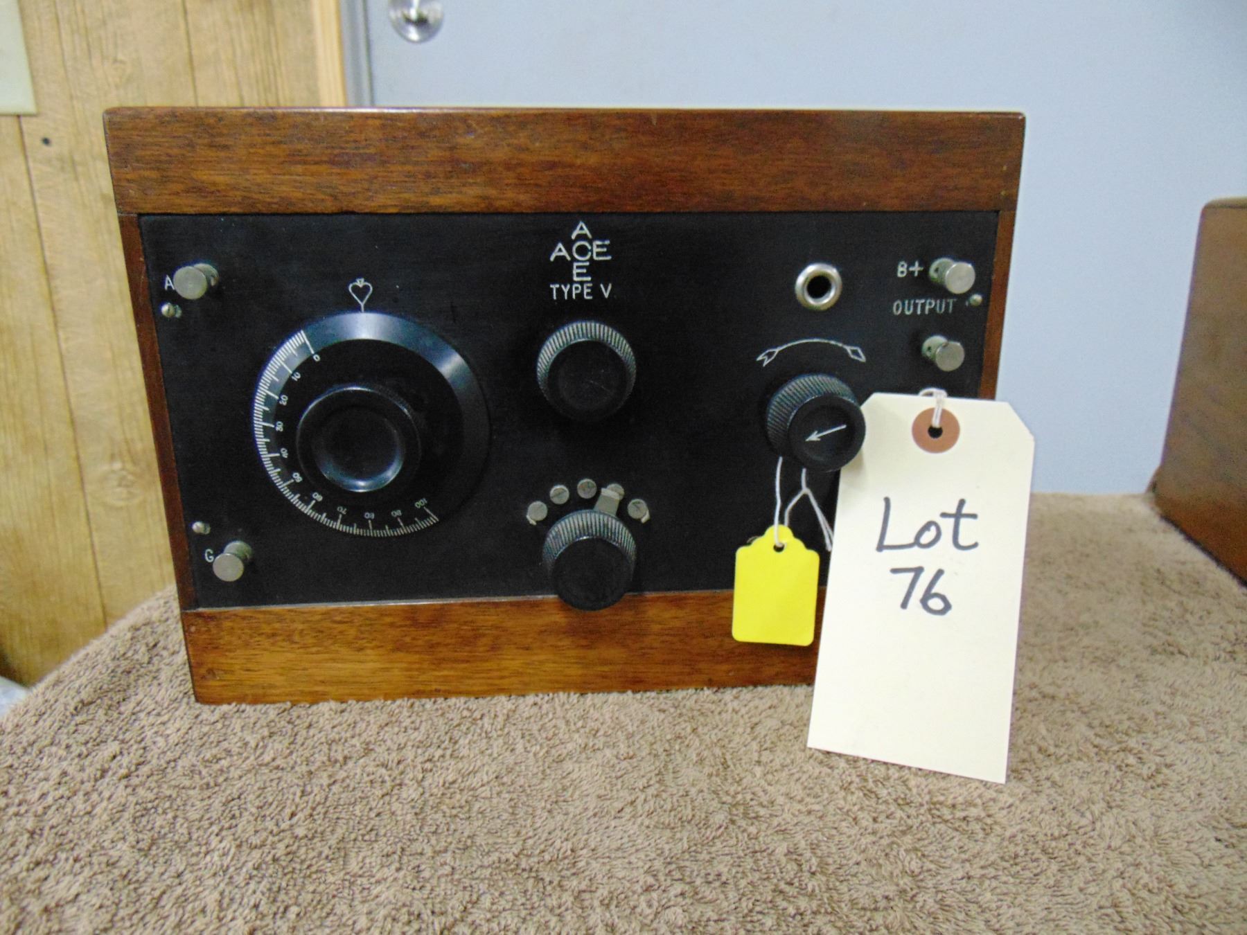 Ace type V; one tube radio; circa 1923; mfg. by Precision Equipment; with good tube