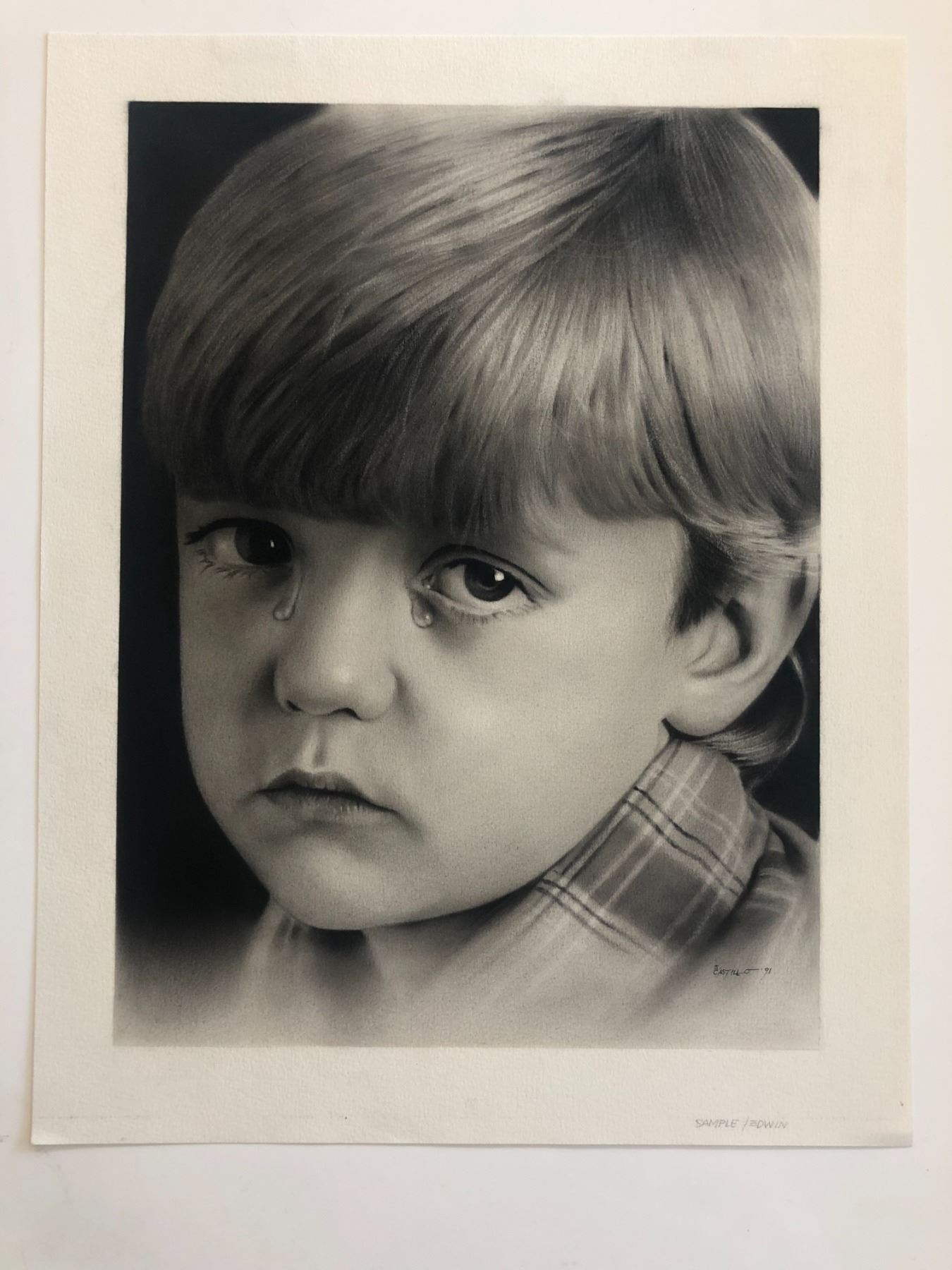 Crying Boy Original Art - Castillo '91 Litho. 14x18 inches