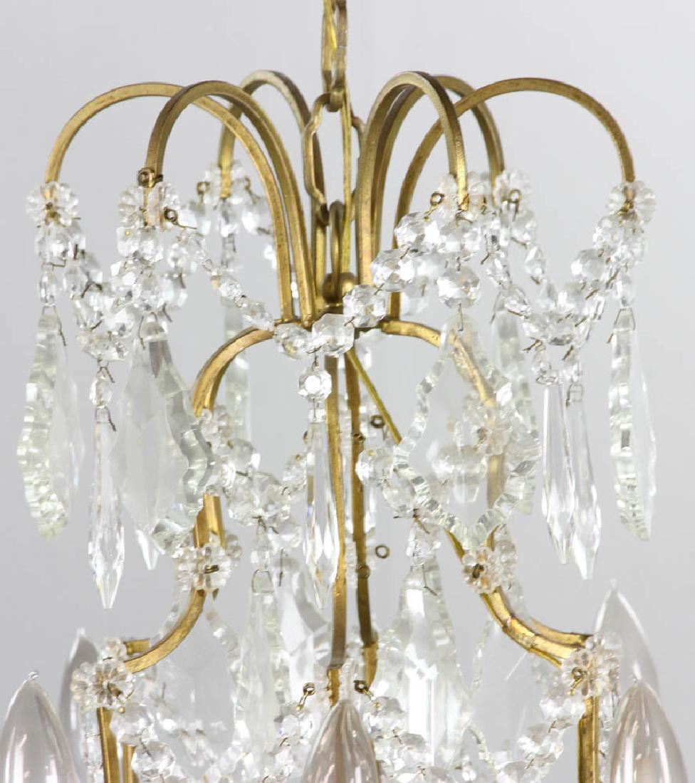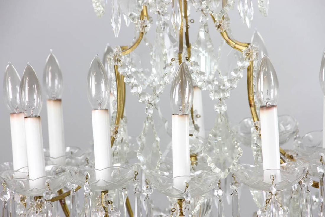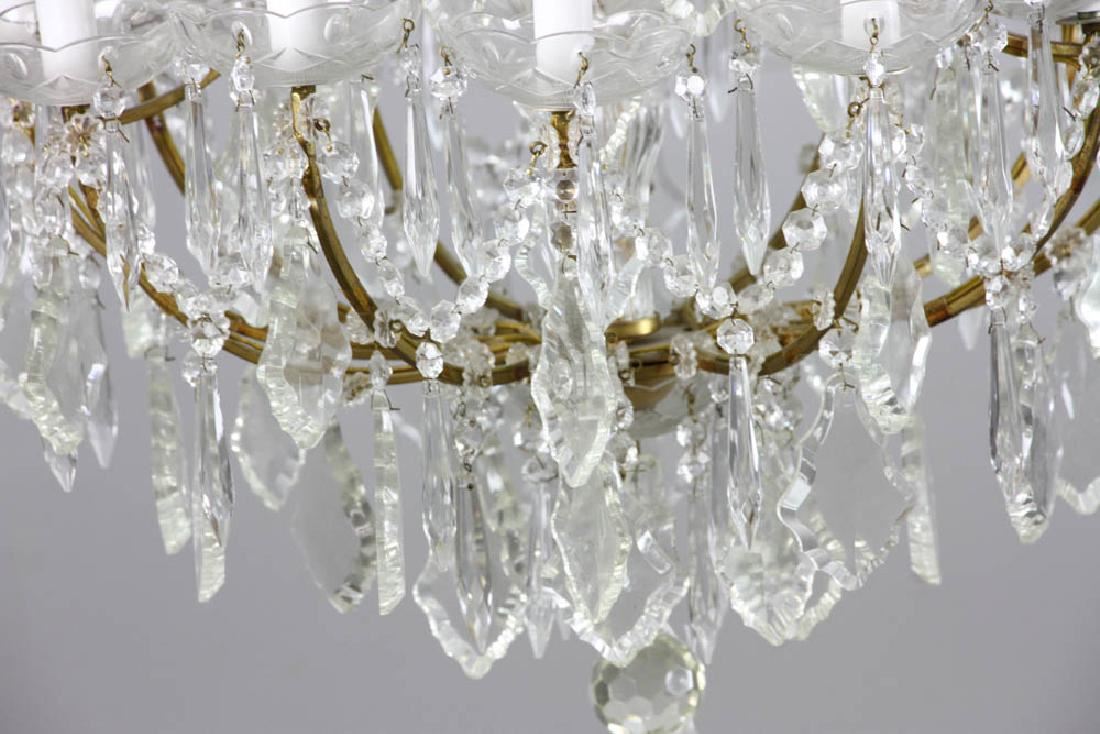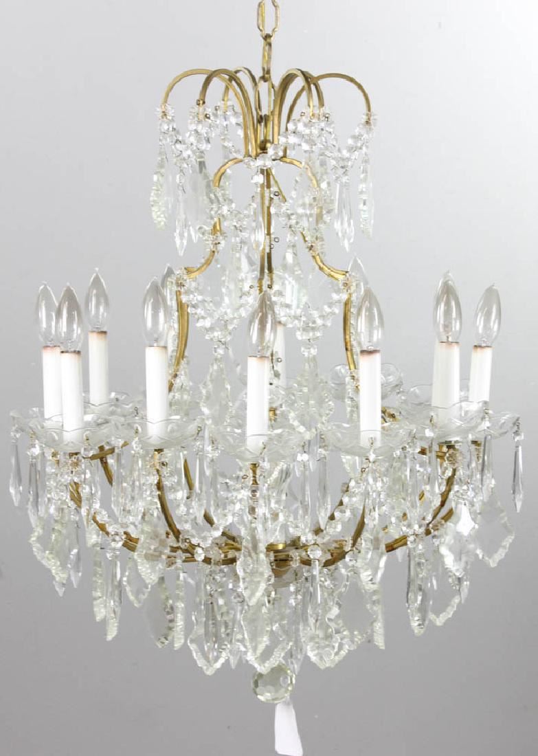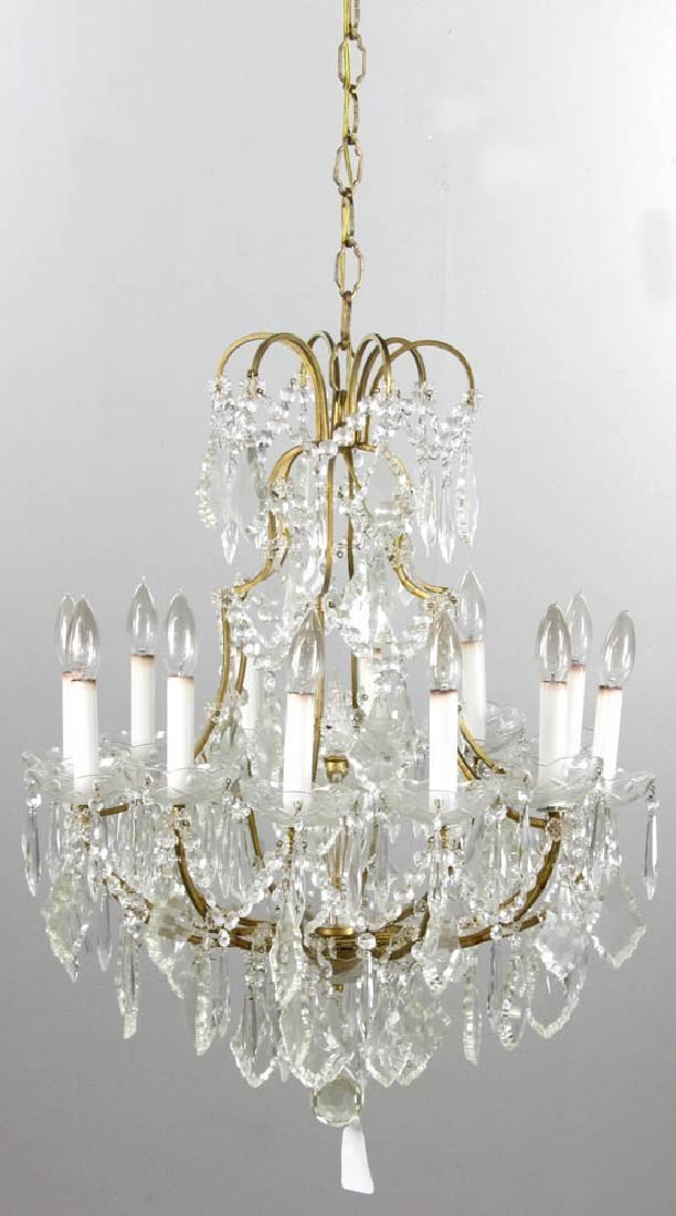 Crystal chandelier with twelve (12) lamps, 45" H x 24" diameter. Provenance: Cambridge, Massachusetts estate.