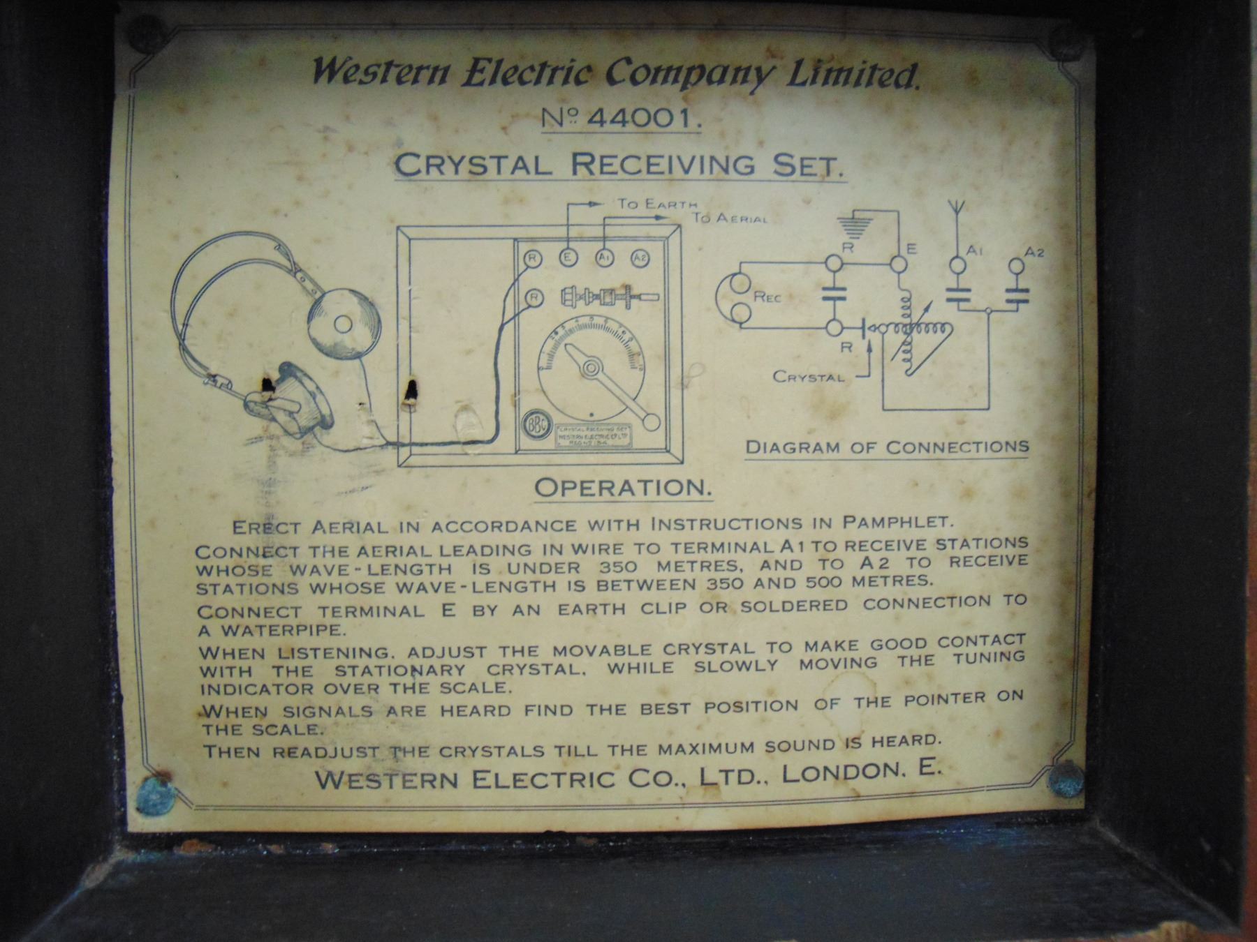 Crystal set similar to Radiola I; mfg. in England by Western Electric Co.; nice; high quality