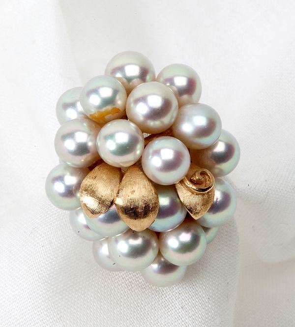 Cultured Pearl, 14K Yellow Gold Cluster Ring