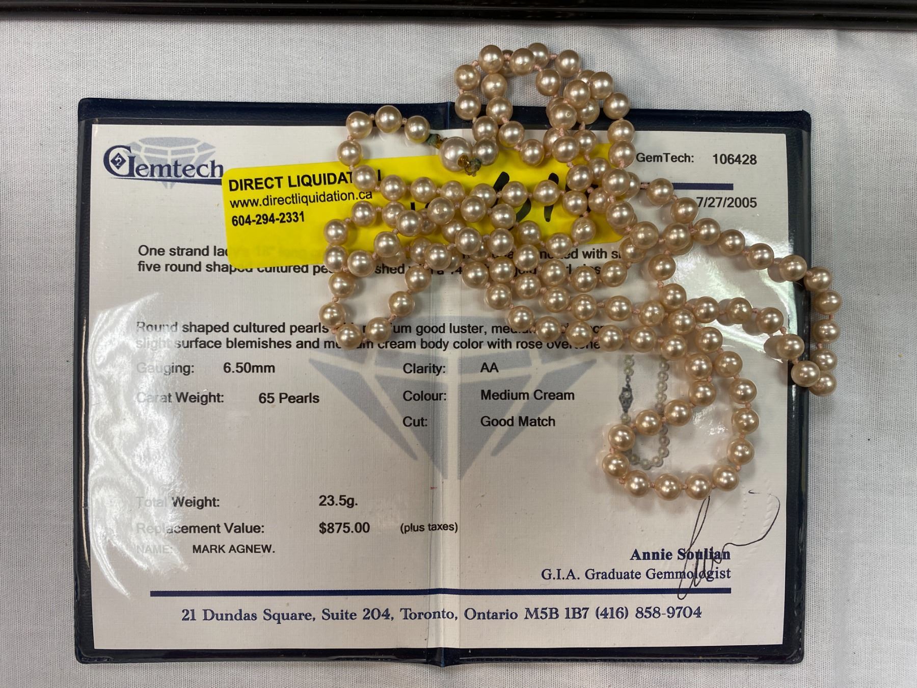 Cultured Pearl Necklace - Medium Cream - with Appraisal value of $875