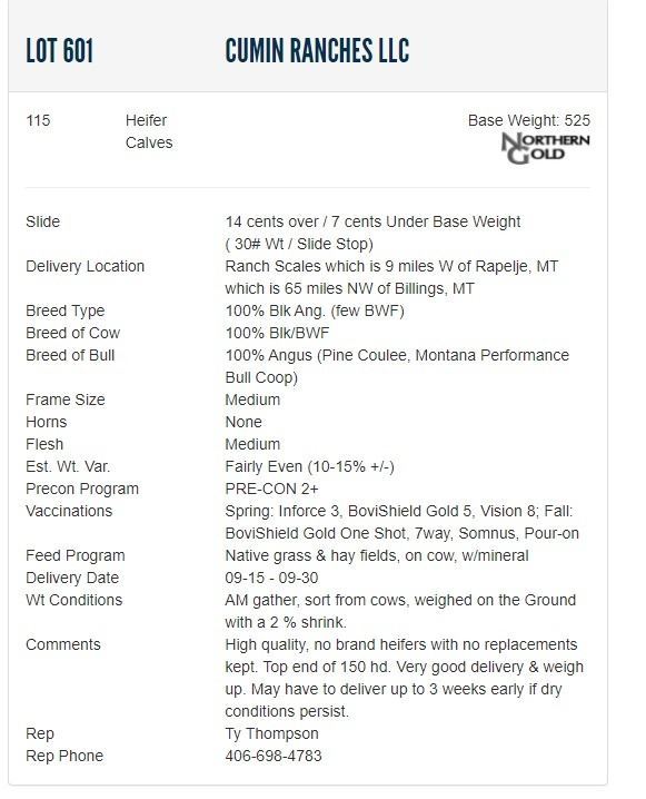Cumin Ranches LLC - 115 Heifers; Base Weight: 525