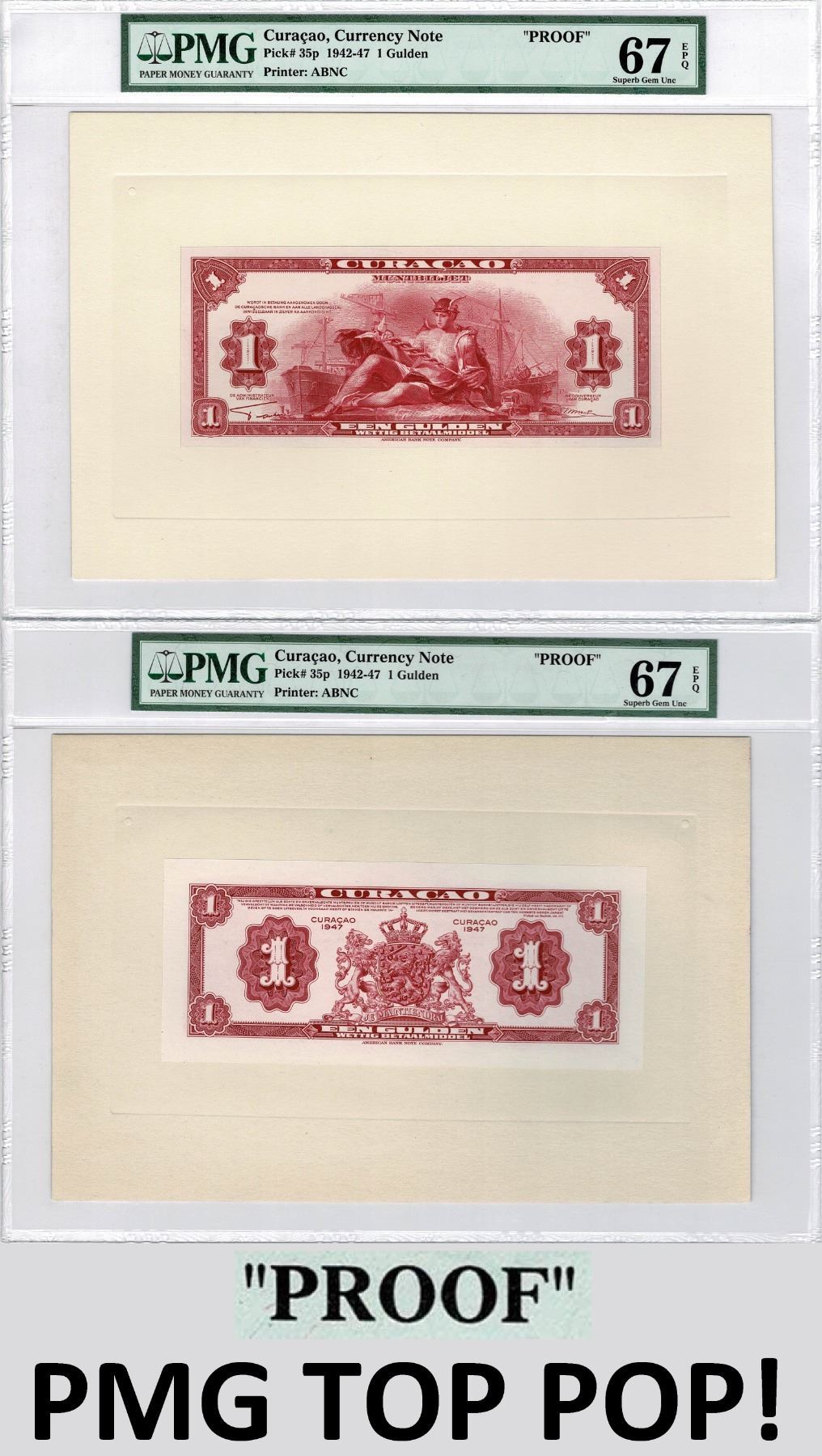 Curacao 2x 1 Gulden 1942 Front & Back Proof Pick 35p PMG Superb Gem UNC 67 EPQ TOP POP