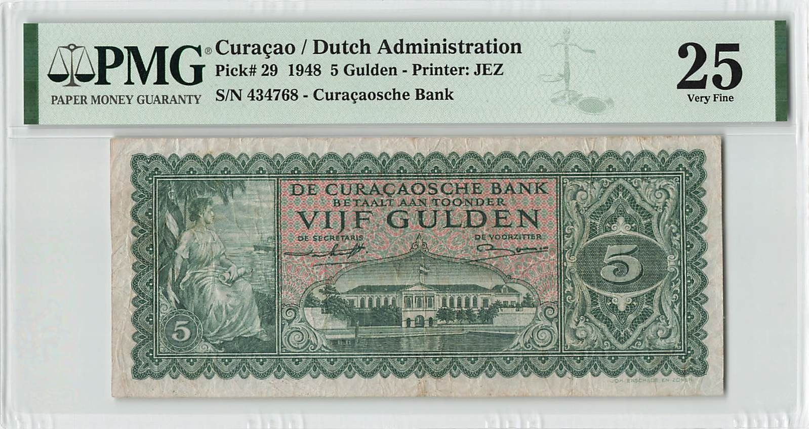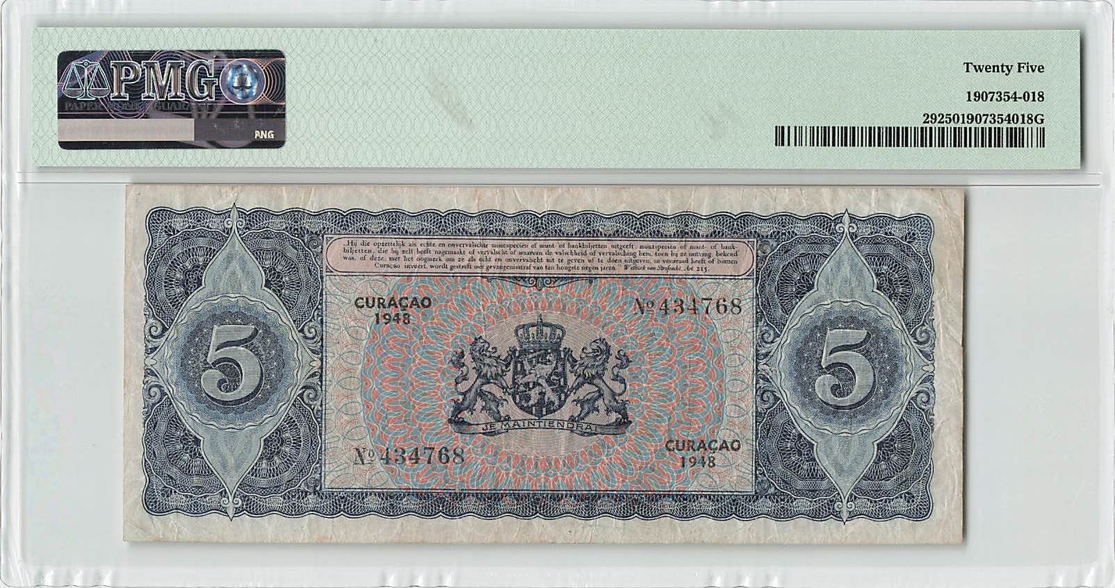 Curacao 5 Gulden 1948 JEZ Pick 29 PMG Very Fine 25
