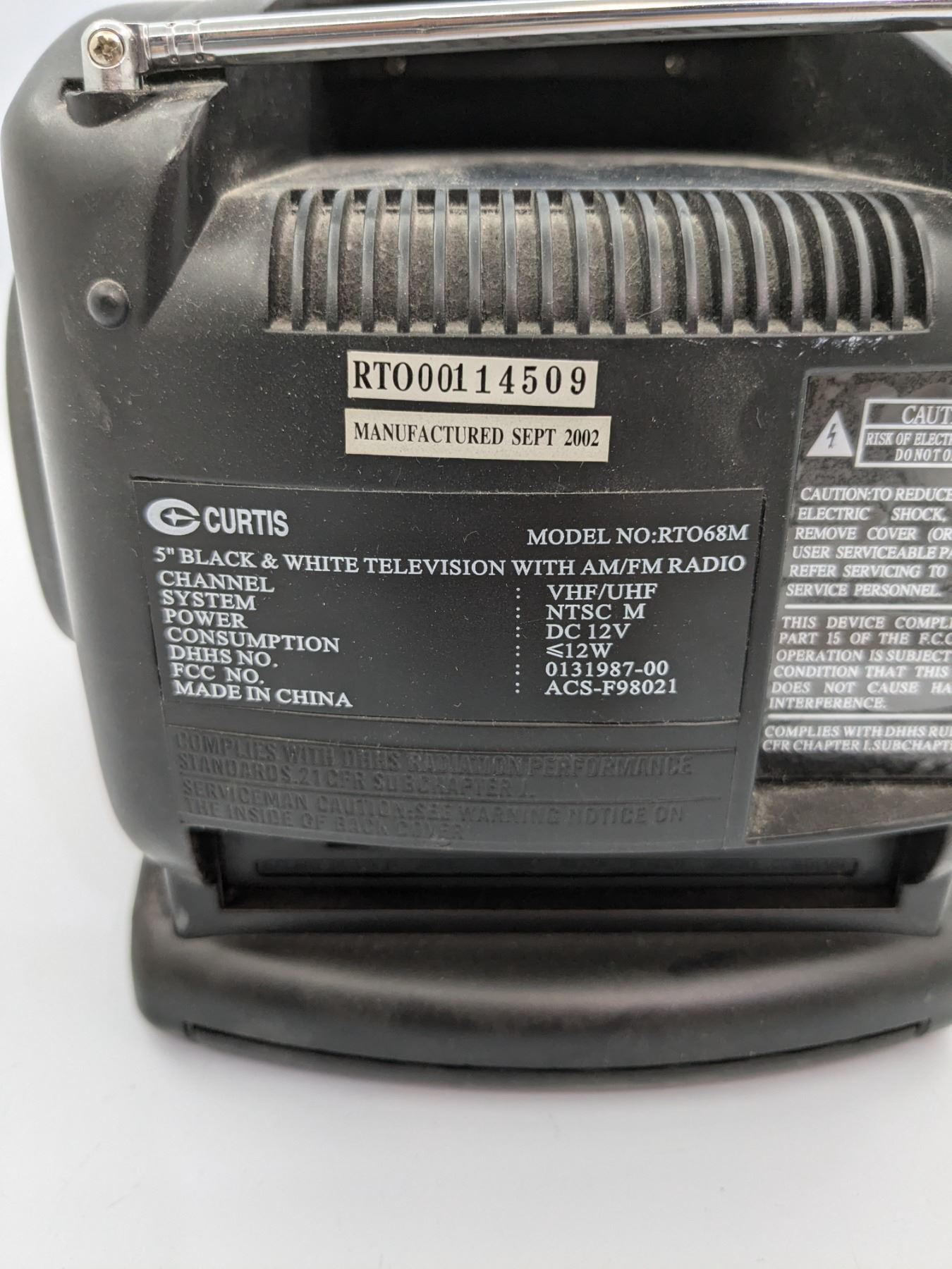 Curtis 5" Black and White TV With AM/FM Radio Model RTO68M